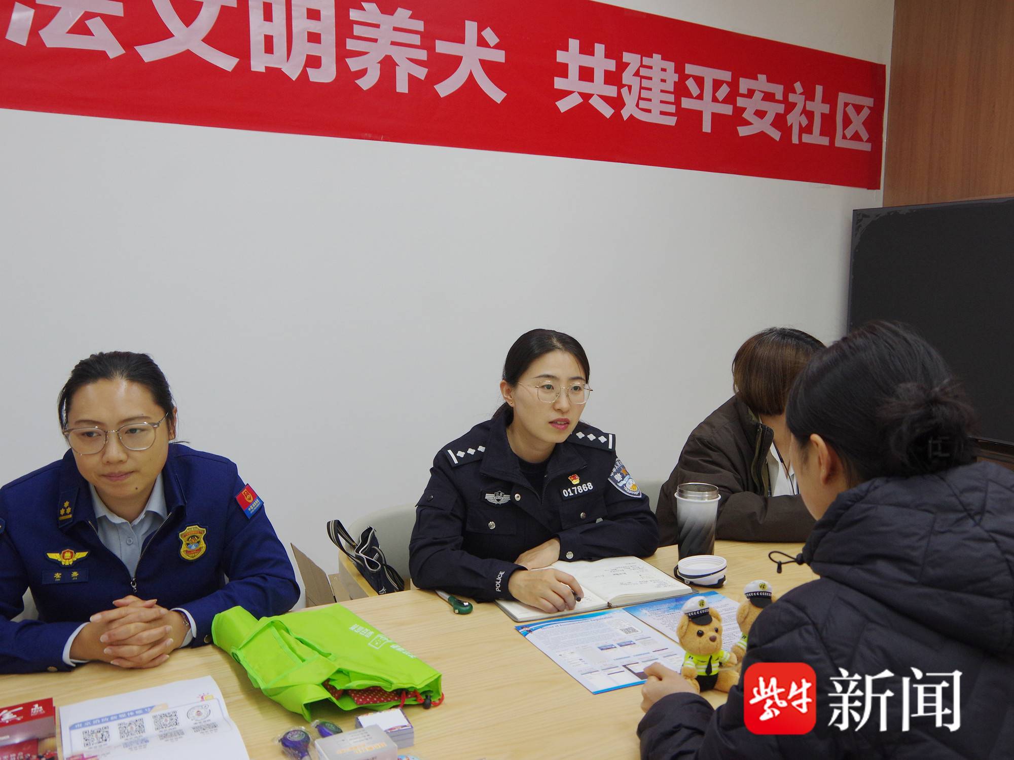 “先生,您的爱犬登记了吗?重点管理区要求所有犬只必须办理登记、定期免疫。”民警拿着宣传单页,结合《南京市养犬管理条例》核心内容,围绕养犬登记、犬只免疫、外出束链、粪便清理等关键要求进行详细解读。现场不仅设置了咨询台、摆放了展板,还发放了牵引绳、拾便袋等“文明大礼包”。