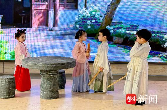 10月1日下午,六朝博物馆一楼大厅,来自江苏省军区第四幼儿园大班的孩子们,穿越千年演绎《咏絮才女》,以儿童视角生动还原东晋才女谢道韫的传奇人生,这也是该园国庆节期间献演的第四部匠心之作。