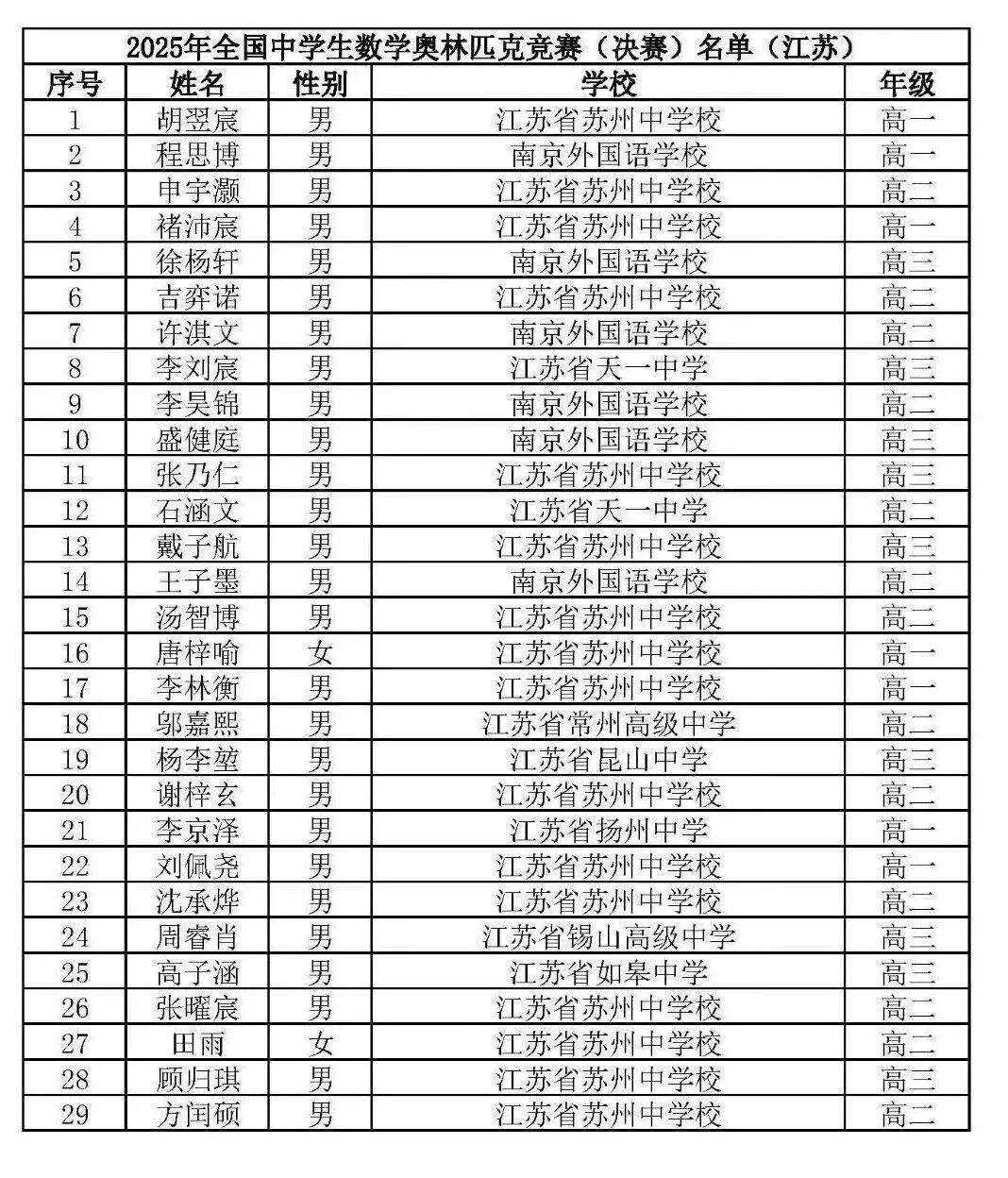 名单公布!29名竞赛生闯进江苏省队,来自这些学校——