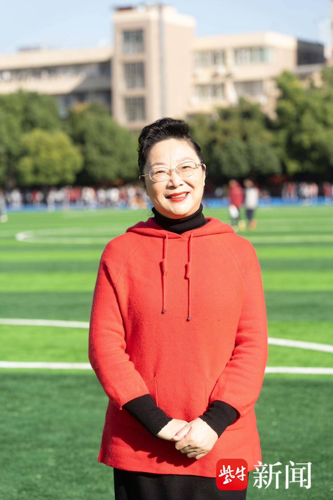 “本次运动会的安排凝聚学校的用心,书法操是我校的特色项目,展现了中国传统文化;获奖班级啦啦操社团的展演也是激发各个班级多出精品;此外,我们还邀请了雨花台高中的足球队来进行表演,激发同学们对足球的热爱。今夏以来,‘苏超’非常火,雨花台中学毕业生及在校生共16个人入选南京代表队,令人骄傲。今天请兄弟学校来校进行校际交流,一是展示他们的足球风采,二是进一步推动我校的足球运动。”