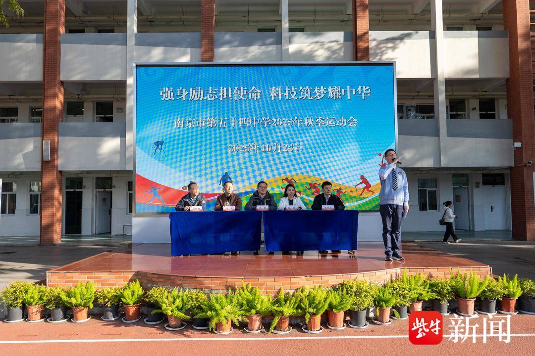 10月24日,南京市第五十四中学操场上旌旗招展,乐声激昂,以“强身砺志担使命 科技筑梦耀中华”为主题的2025年秋季运动会开幕式正式拉开帷幕。全体师生齐聚绿茵场,共同见证了一场融国防科技教育与体育精神于一体的视听盛宴。