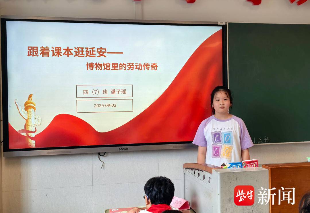 今年是中国人民抗日战争暨世界反法西斯战争胜利80周年,“小米粒”们还纷纷前往全国各地的红色场馆。“姥爷给我讲了很多抗战故事,从中能够感受到革命先辈奋勇抗争的精神品质。” 潘子瑶跟着家人去了延安,在南泥湾纪念馆里,她盯着先辈们用过的扁担、箩筐看了好久:“这些农具凝聚着大家的智慧。我仿佛看到了他们扛着锄头、弯着腰开荒种地的样子。我们现在的好日子,是他们一点点干出来的。”