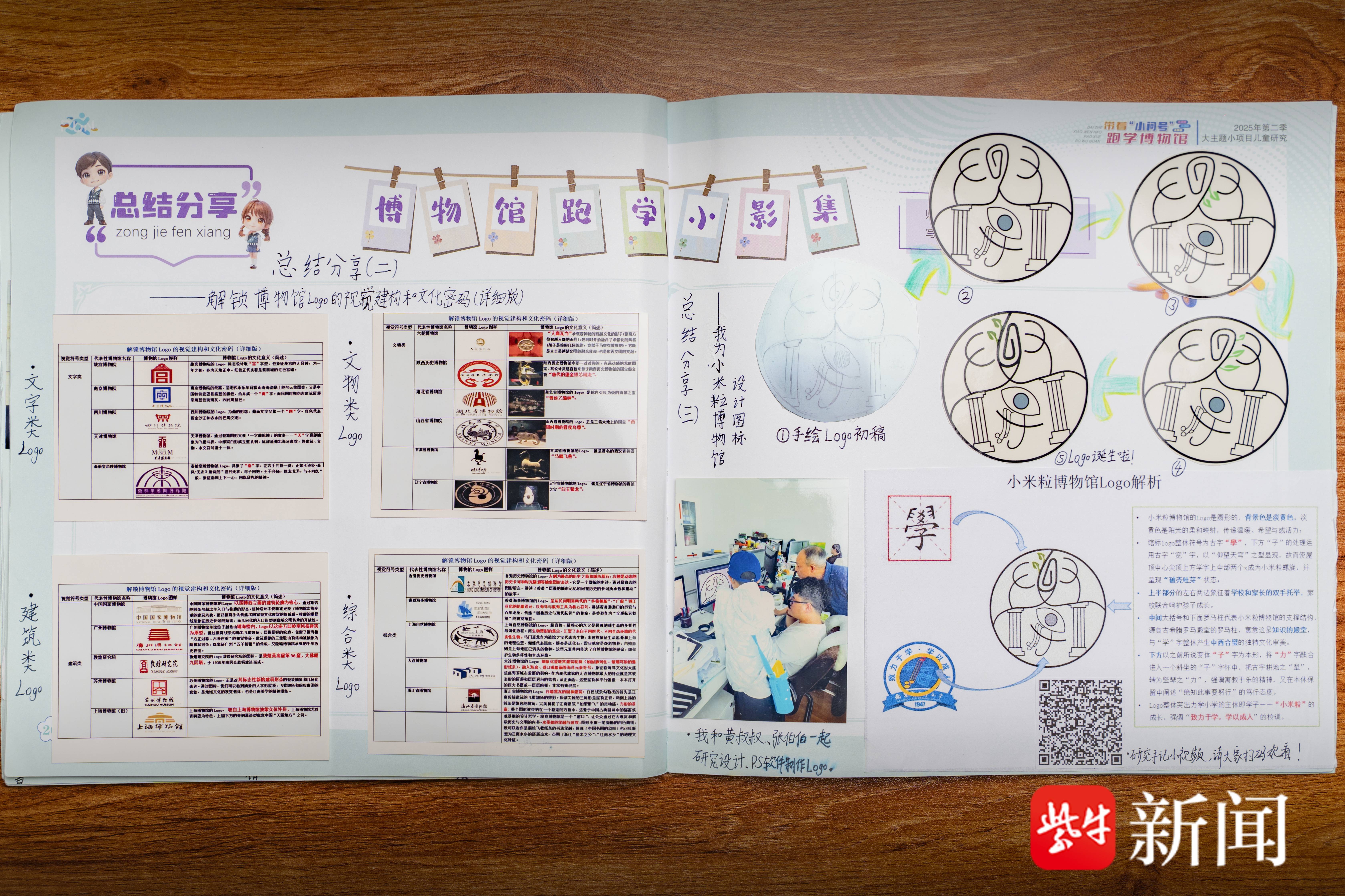 杨谦济有一双善于发现的眼睛,“从小到大,我去了很多博物馆。渐渐地,我发现每个博物馆的logo都各有特色。比如故宫博物院的logo是‘宫’字变形,藏着传统建筑的飞檐;南京六朝博物馆的logo,是人面纹瓦当的抽象轮廓,一看就有六朝味儿……”结合自己的疑问和暑期出行规划,杨谦济先后去了南京六朝博物馆、上海自然博物馆、香港历史博物馆,深度探索其logo背后的文化密码。