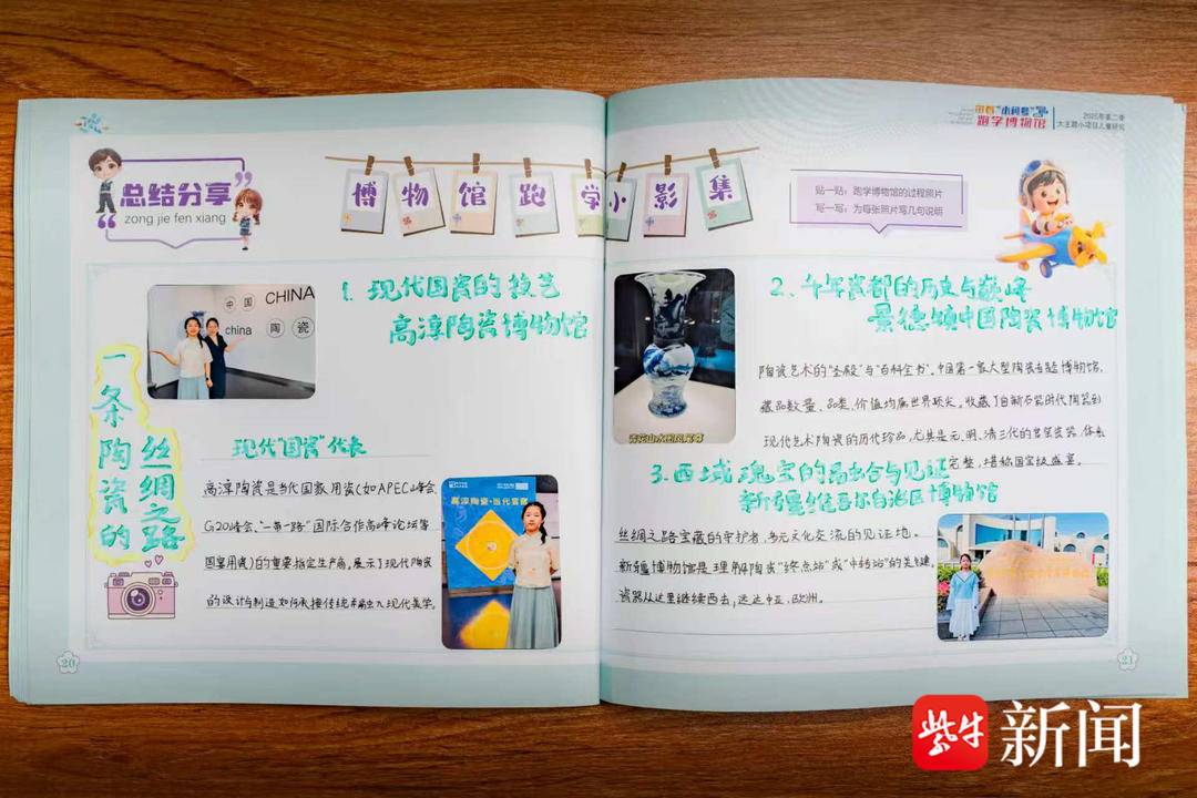 不少“小米粒”还一头扎进了古代文明的“宝藏库”,围着青铜器、瓷器“刨根问底”。作为高淳人,陈瑾之对陶瓷有份“家乡情”,从高淳博物馆看完本地陶瓷,又跟着爸妈去了景德镇中国陶瓷博物馆。最让她惊喜的,是假期游玩时的意外发现,“去新疆游玩时,我发现新疆博物馆也有瓷器,我们立刻改了行程,来了场说走就走的博物馆之旅!”她的手记里贴满了陶瓷照片,“高淳的国瓷、景德镇的瓷器艺术‘圣殿’、西域瑰宝的融合,原来陶瓷也有‘丝绸之路’。”