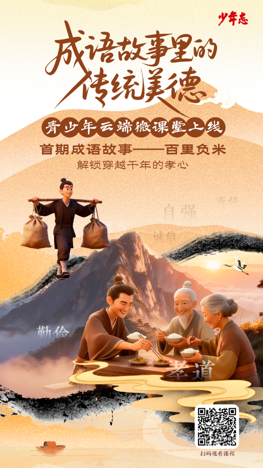 百善孝为先。“当我们时常抱怨长辈做的饭菜不合口时,可曾想过,在两千多年前的春秋时期,有一位少年,为了让父母吃上一口温热的米饭,竟徒步翻越几座大山,往返百里路程。这份藏在米粒里的坚持,就是成语‘百里负米’的由来。”。10月29日,“成语故事里的传统美德”青少年云端微课堂正式上线,首期课程聚焦“百里负米”这一经典成语,通过AI动画还原春秋时期的孝心佳话,传递跨越千年的亲情力量。