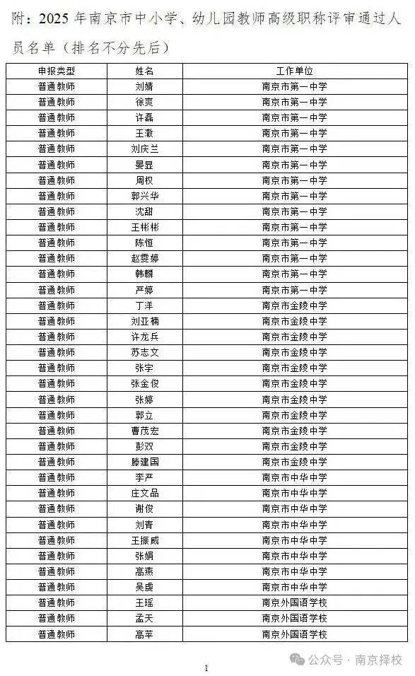 近日,南京市教育局发布中小学、幼儿园教师高级职称评审通过人员名单的公示,来看看有没有你认识的老师——