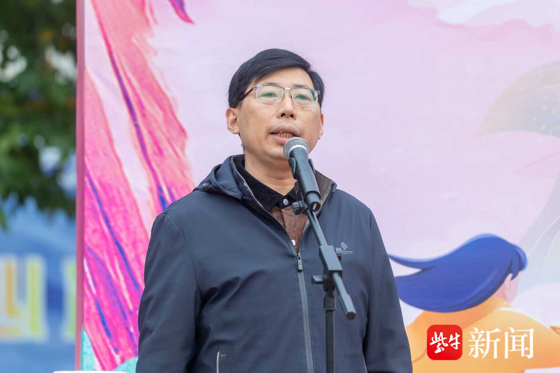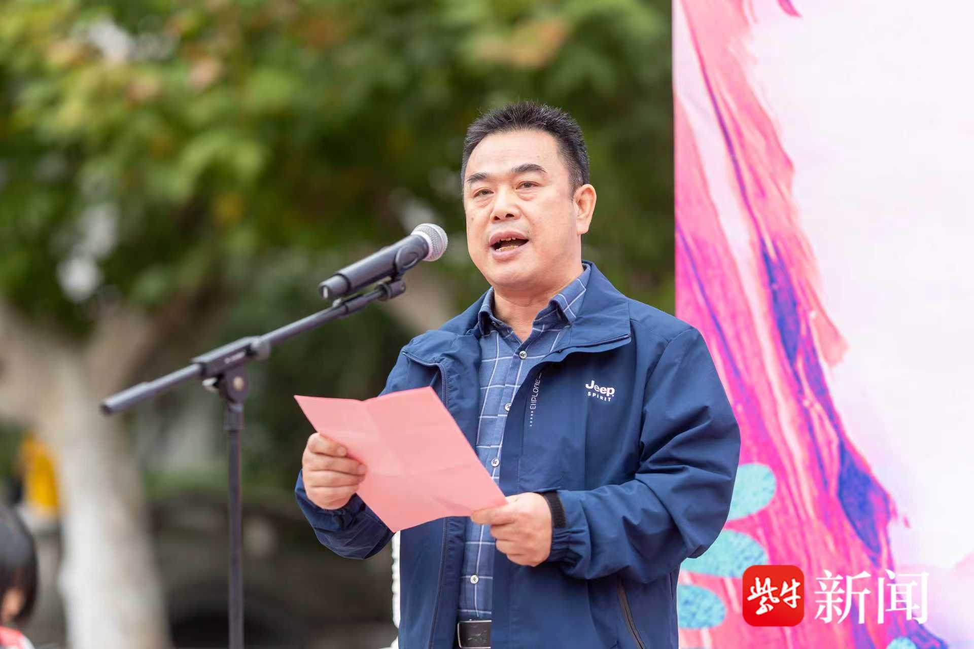 南京市第二十七高级中学校长杨国钢宣布运动会启幕。各班级方阵依次登场,创意十足的展示点燃现场气氛。
