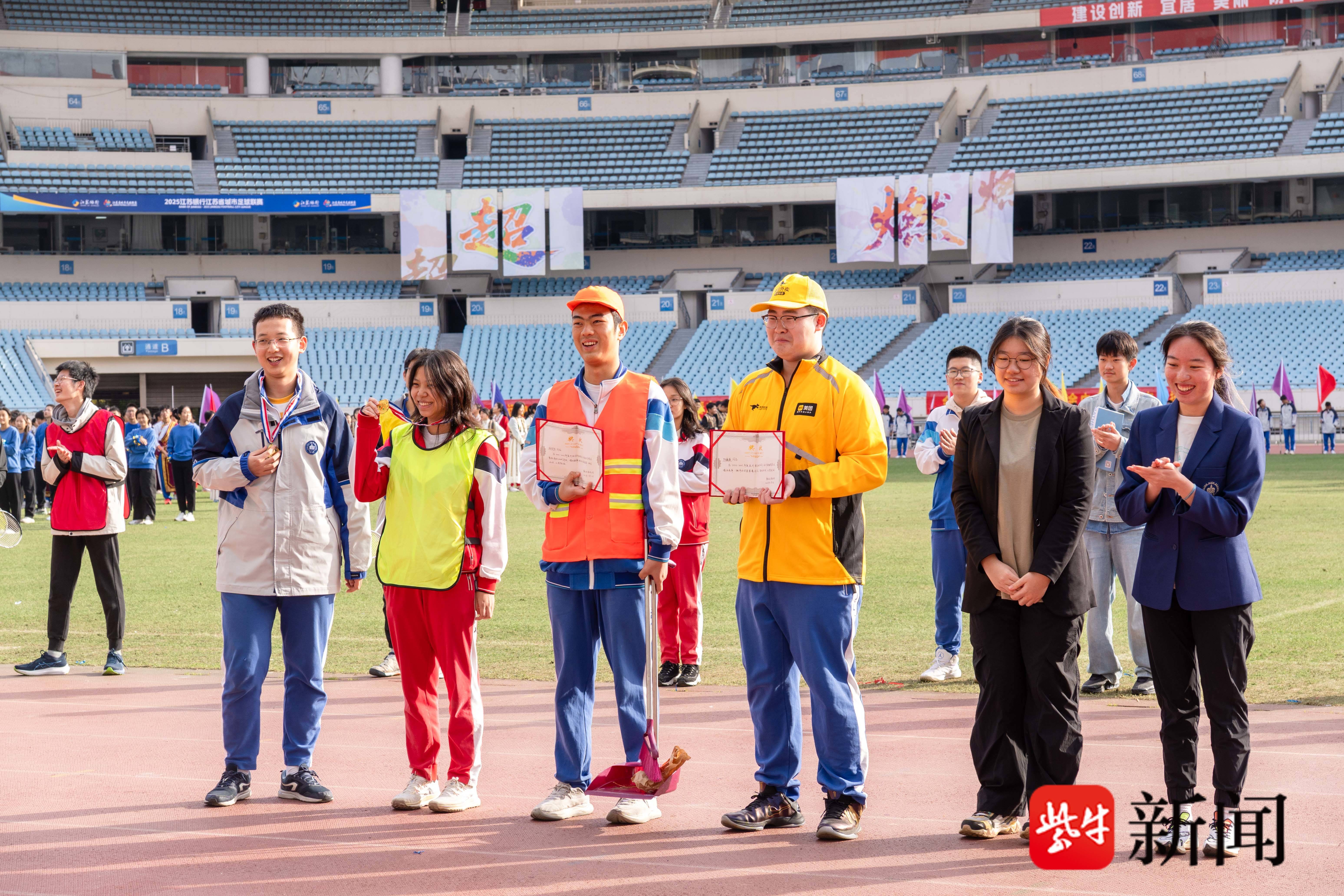 “这份拼搏和超越的体育精神,历经百年风雨,愈发熠熠生辉。在刚刚落幕的鼓楼区‘区长杯’校园足球联赛中,我校足球队最终挺进2025年南京市‘市长杯’足球联赛!此外,女篮获得了2024-2025耐克中国高中篮球联赛江苏赛区第一名、2025年江苏省青少年篮球甲组冠军赛第二名。南京市青少年阳光体育节,我校荣获校园羽毛球联赛高中职校组团体一等奖、第十八届龙舟联赛高中混合组龙舟竞赛一等奖。”