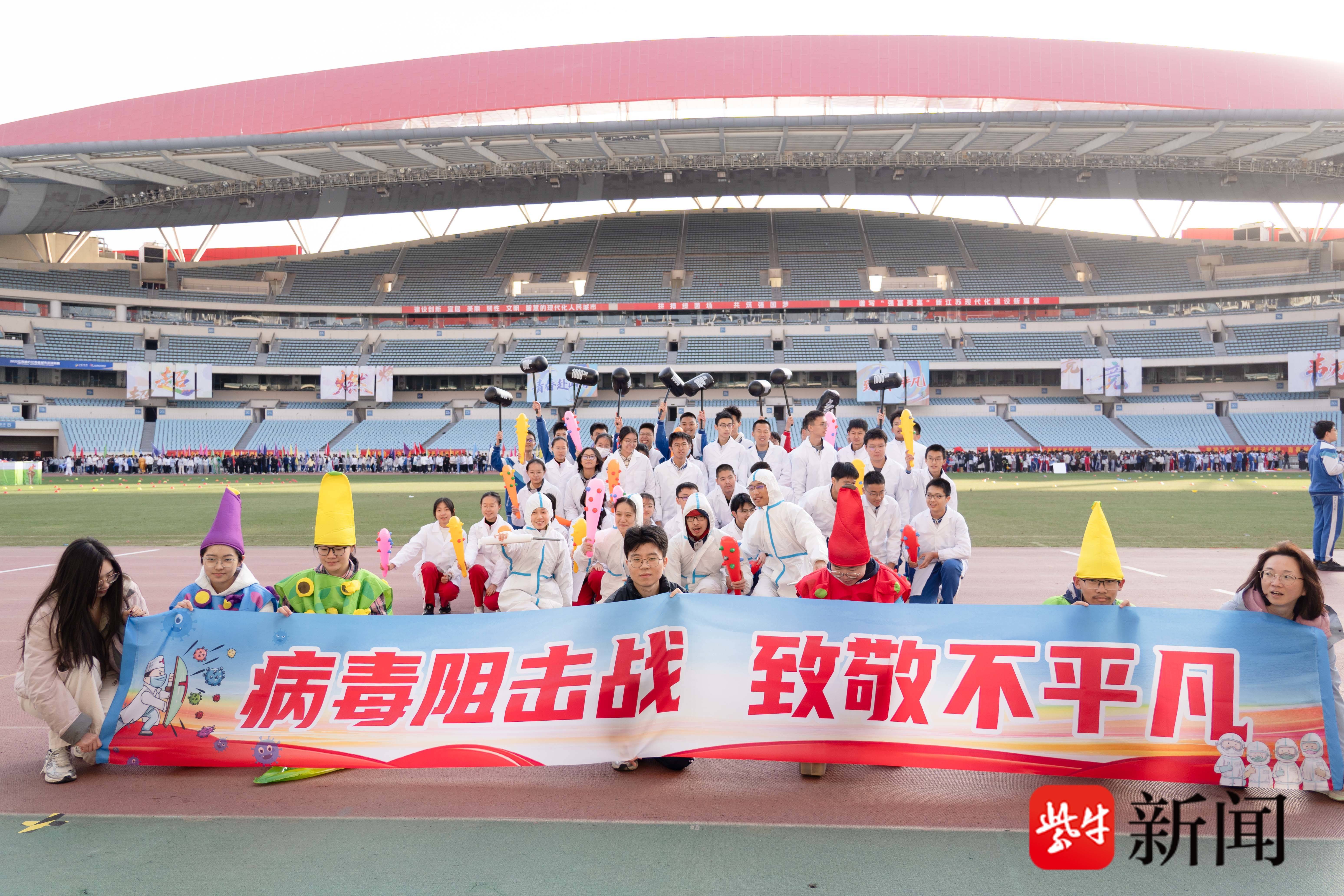 11月3日,南京市金陵中学“青春赴山海 致敬不平凡”秋季田径运动会在奥体中心举行。高一年级师生千人齐跳“打跳舞”,新街口校区和江心洲校区斗舞,青春的蓬勃力量和昂扬的少年精神燃爆奥体。