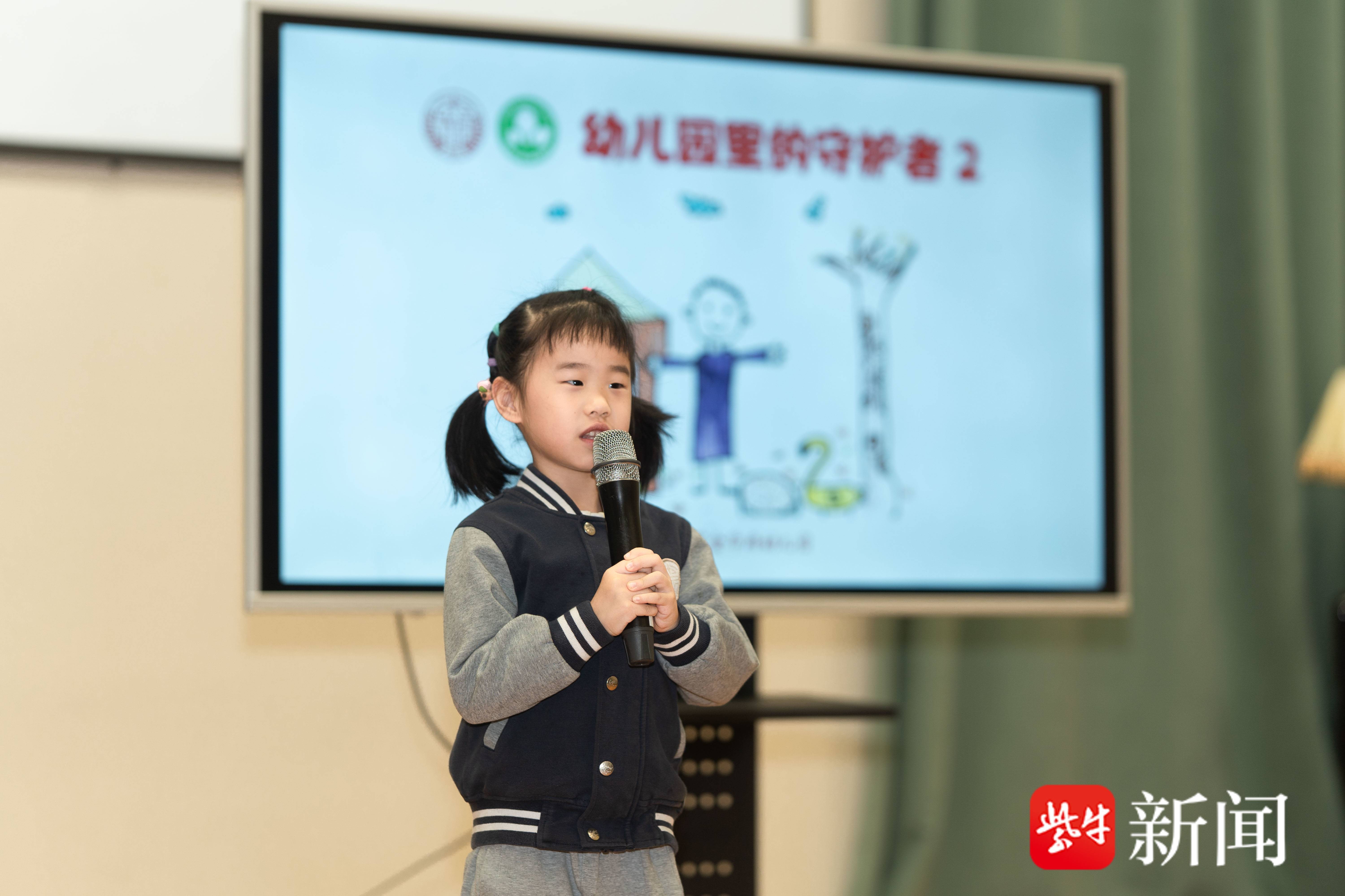 大班陈芓妤小朋友分享的《先启幼儿园日常》则聚焦保安王爷爷。当小鸭子长大、旧住处嫌小时,王爷爷带领大家用树枝和画满图案的遮雨布搭起新棚,在他的守护下,孩子们与小动物们都暖意融融。稚嫩童声讲述着温暖的绘本故事,听得嘉宾们心底也泛起暖意。