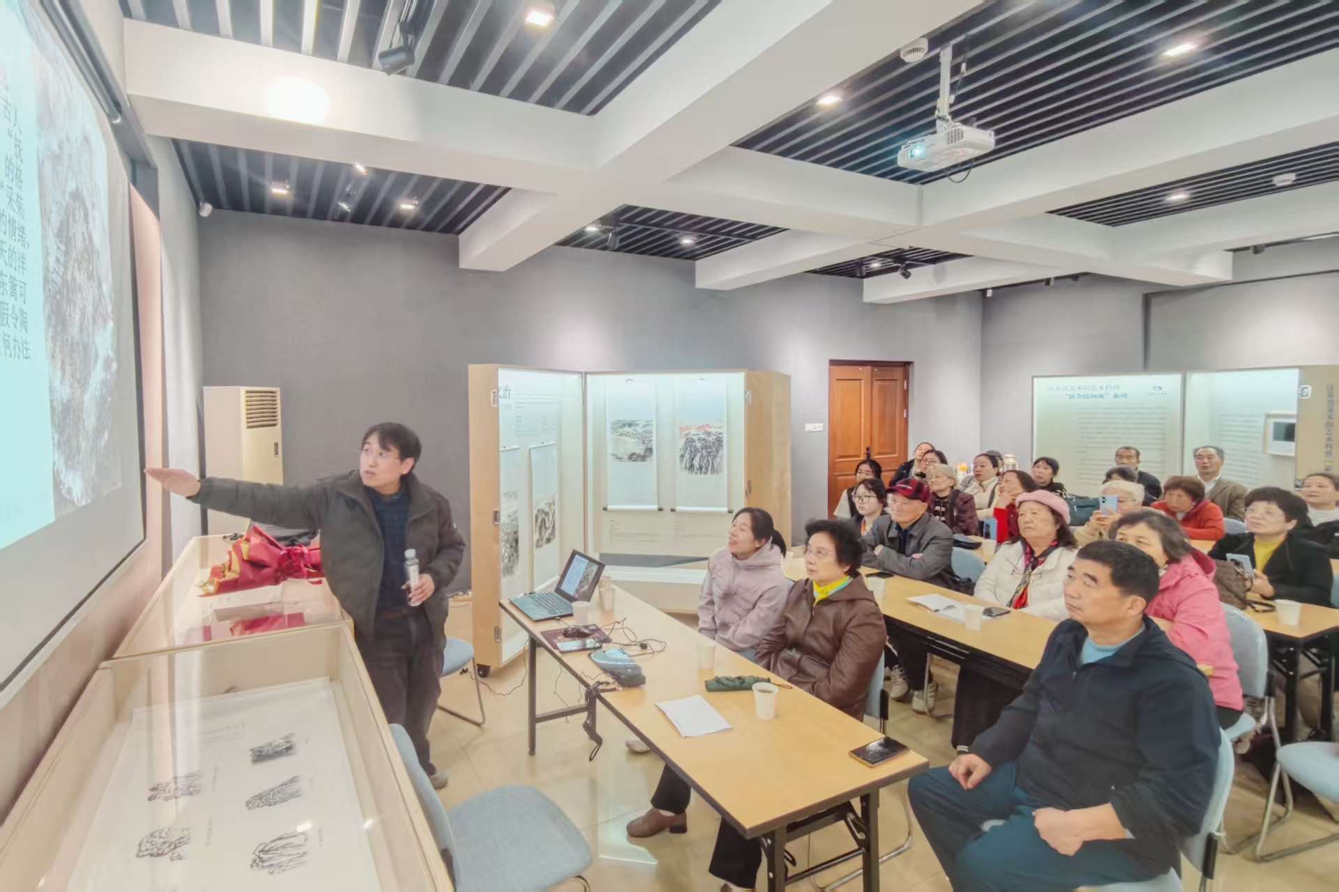 11月7日下午,尽管细雨濛濛,傅抱石纪念馆内暖意融融。江宁老年书画研究会的书画爱好者们冒雨赴约,参与由江苏省美术馆公教部联合江苏省国画院傅抱石纪念馆、江苏省老年书画研究会共同主办的“傅话丹青万里行——重温新金陵画派写生之旅”活动,开启一场与“新金陵画派”经典的深度对话。