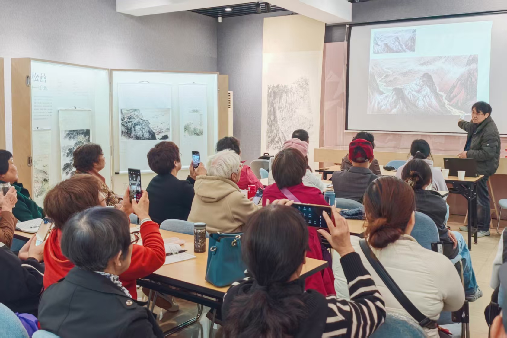 针对书画爱好者中常见的“写生即抄画”误区,黄戈馆长深入浅出地拆解“临”与“摹”的精髓:“古人用油纸摹画,是为了把线条的宽窄粗细‘刻’进手里。对着原作临摹,更绝非追求形似即可。”他特别向自学爱好者支招:“要像拼零件般逐个攻克树、石、水口的画法,公园、河边、老建筑都是天然画纸。临摹两三年后,不妨约着好友走出画室,让笔墨接触真实光影,逐步形成自己的绘画语言。”