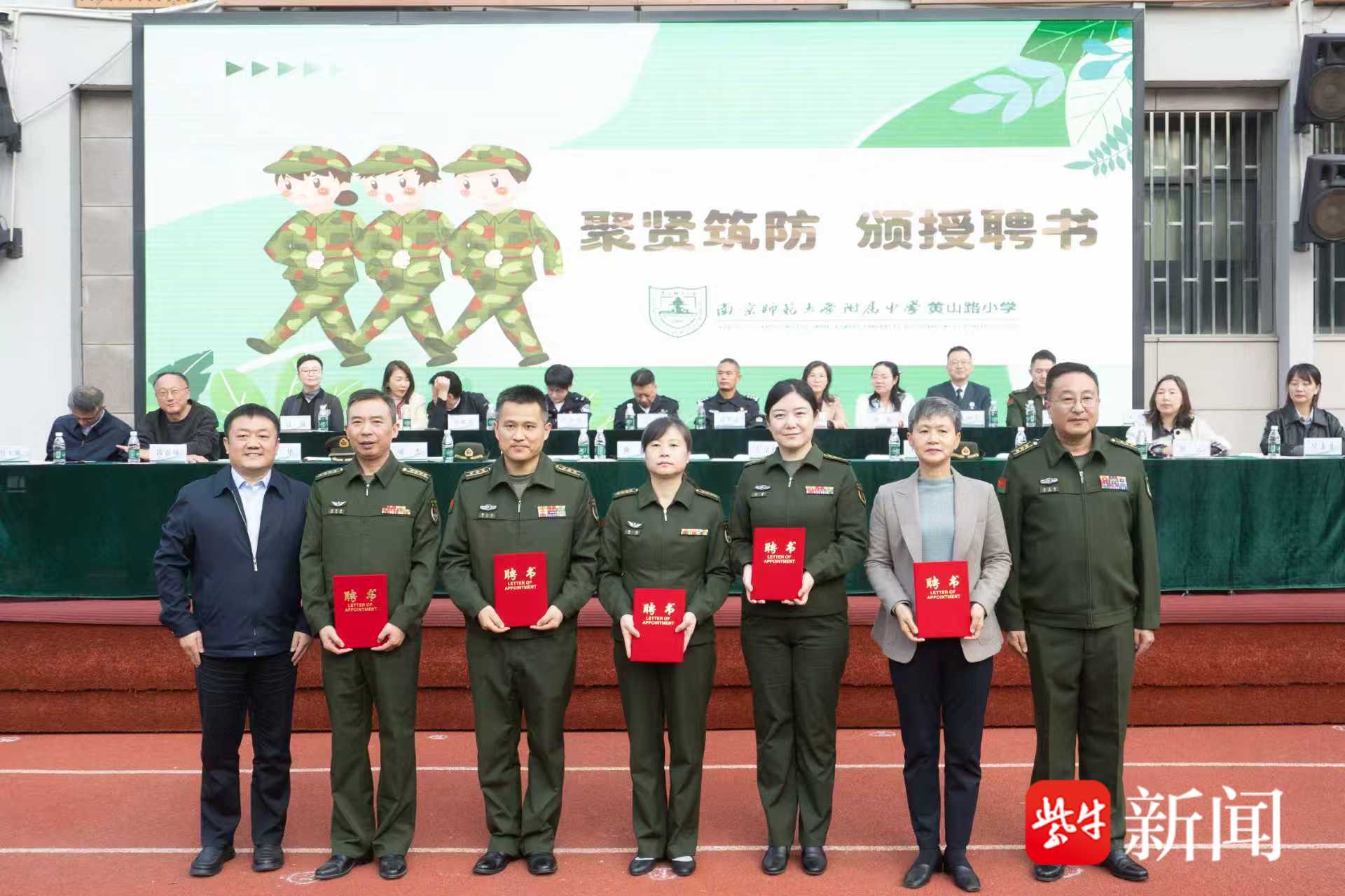 活动中,建邺区委教育工委副书记肖大明宣读受聘专家名单,南京市建邺区人武部政委左呈炜(上图右一)、建邺区教育局局长戴喜(上图左一)共同为国防科技大学、陆军工程大学、东南大学的五位专家教授颁发“建邺区国防教育指导专家”聘书,期待专家赋能区域国防教育高质量发展。此次聘任仪式标志着校军联动育人体系的进一步深化,将依托高校优质资源为区域国防教育提供专业支撑,助力构建更具系统性、专业性的国防教育生态。