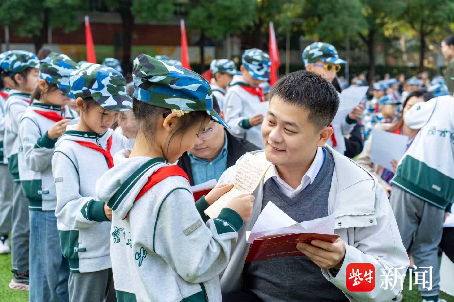 国防教育不仅有铁血担当,更有温情与感恩。本次活动以“二礼合一”为核心亮点,将孩子们10岁成长礼的仪式感与国防实践周的使命感深度融合,通过多样活动让学生领悟个人成长与家国复兴的关联。南京师范大学附属中学黄山路小学党支部副书记季筋、家长代表蒋苏立警官与学生代表们携手登台,共同朗诵《十岁志》。三年级学生与父母互读家书,孩子们用铅笔写下强国志向,与父母笔下的殷切期望交织,让许多家长湿了眼眶。
