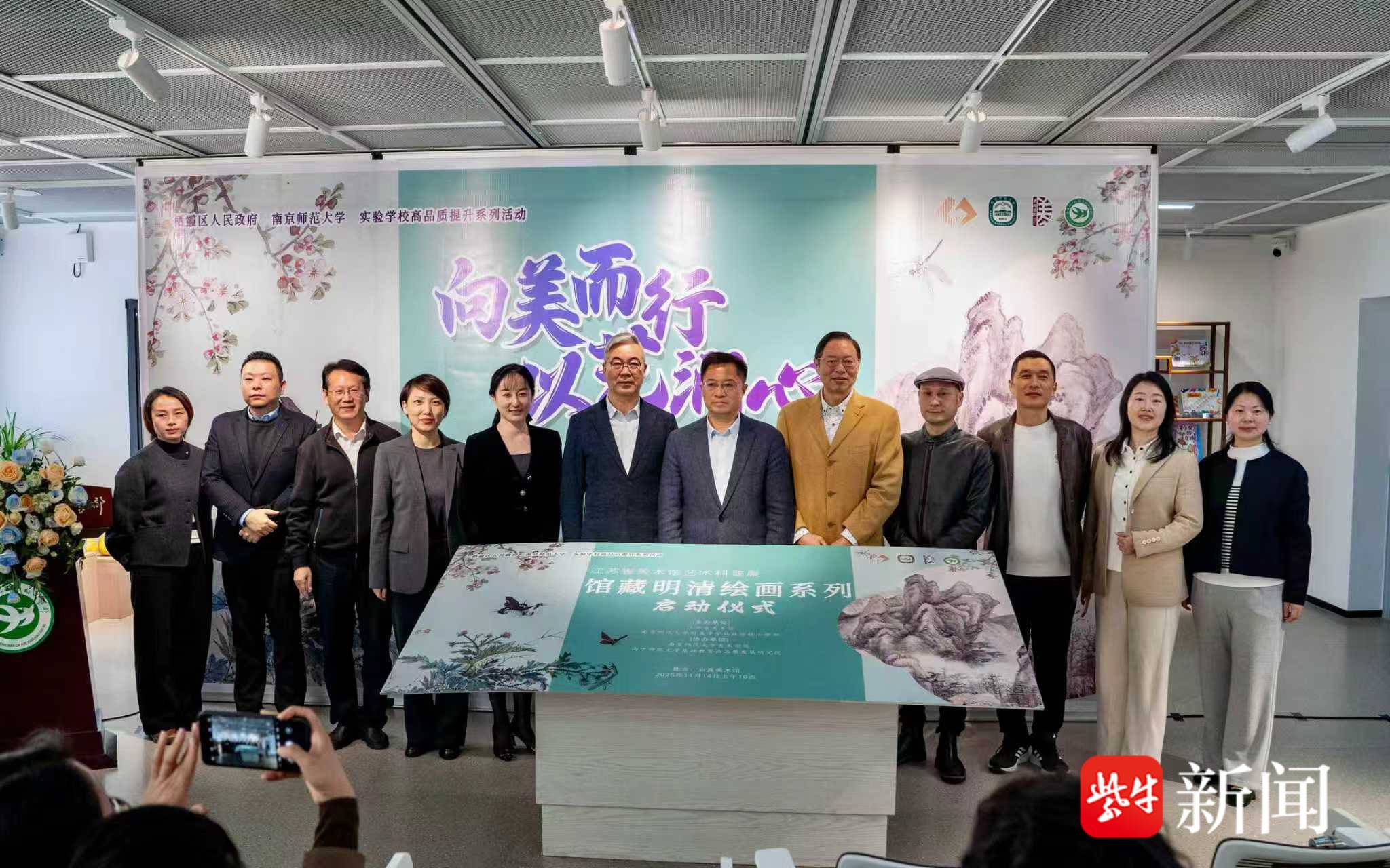 启动仪式上,江苏省美术馆党总支书记、馆长王法,副馆长陈岚,南京市教科所原所长肖林元,南京师范大学美术学院教授秦华,栖霞区教育局局长倪天华、副局长陈婷婷等领导专家,以及师生、家长代表齐聚启真美术馆共同出席,见证校馆合作协同育人的重要时刻。