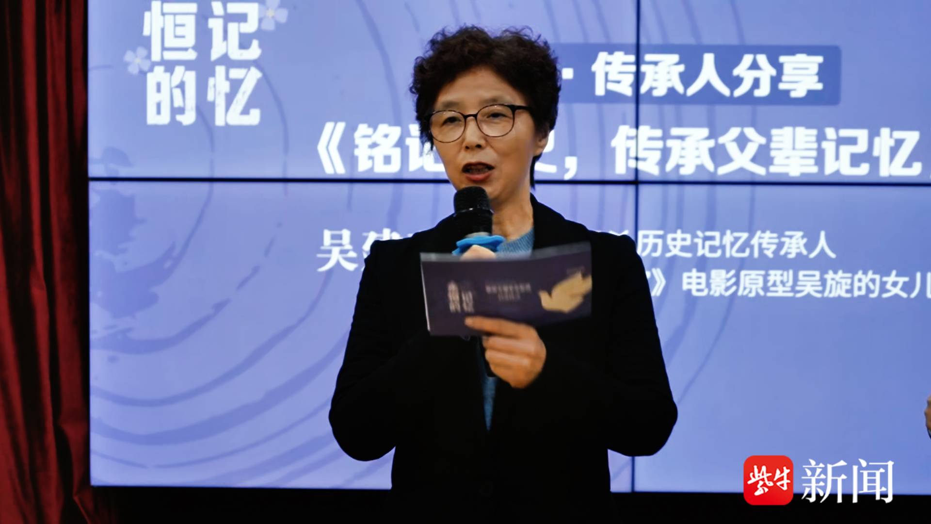 在活动分享环节中,南京大屠杀历史记忆传承人吴建琦讲述了父亲吴旋——电影《南京照相馆》中人物原型的经历。她提到,父亲当年偶然拾得罗瑾冒死留存的日军暴行相册,并将相册贴身藏了整整六年。这本相册最终成为审判日本战犯谷寿夫的“京字第一号证据”。吴建琦对同学们说,“父亲始终坚信我们一定会胜利,一定会让日本侵略者受到惩罚。”吴旋朴素而坚定的爱国情怀,令在场师生深受触动。