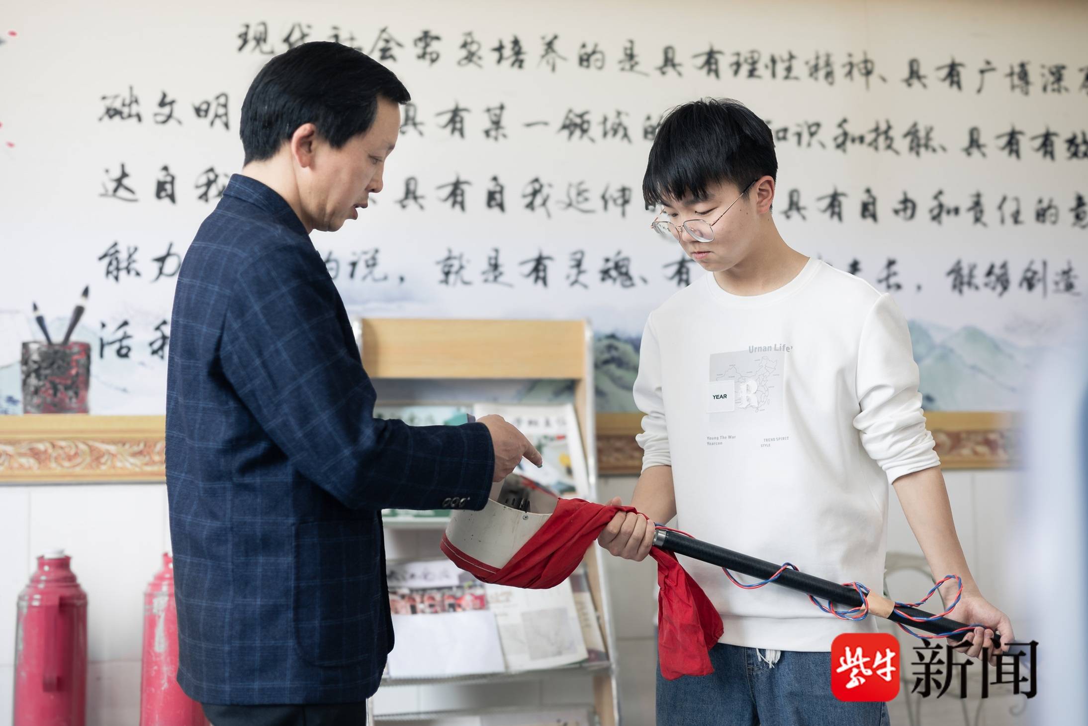为了实现梦想,蔡成耀成了“科研迷”。他从图书馆借来农业、物理、机械类书籍,在网上搜罗教学视频,一点点积累知识;周末一有空,就跑到镇农业技术推广站,向专家请教稗子的生长周期、繁殖方式和现有除草技术。加入学校科技社团后,蔡成耀得到了辅导老师高永彬的全力支持。高老师不仅帮他梳理思路、攻克难点,还牵线联系南京工程学院老师为他提供专业设计指导。针对稗子分布不均的问题,他选用长不锈钢管作为主体,设计专用除草头,让除草面积扩大8倍,大幅提升效率。