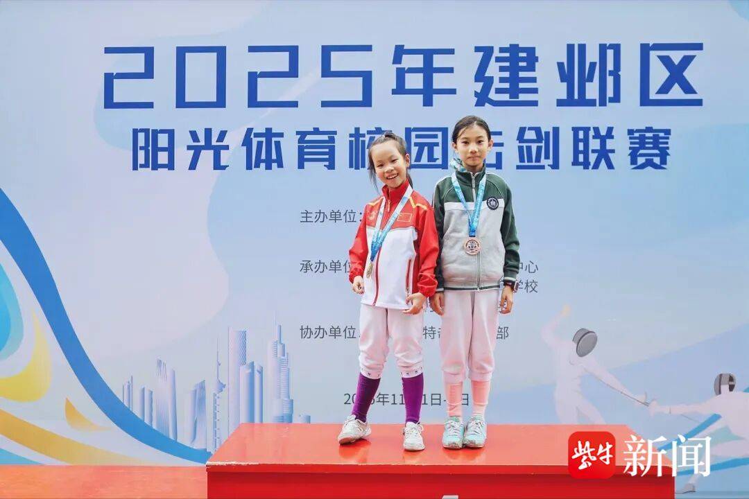击剑馆内,银光闪烁。金陵河西击剑队同学们步伐灵动,出手如电,成功将2025南京市建邺区青少年阳光体育校园击剑联赛全区一等奖第一名的荣誉收入囊中,尽显优雅与力量的竞技魅力。