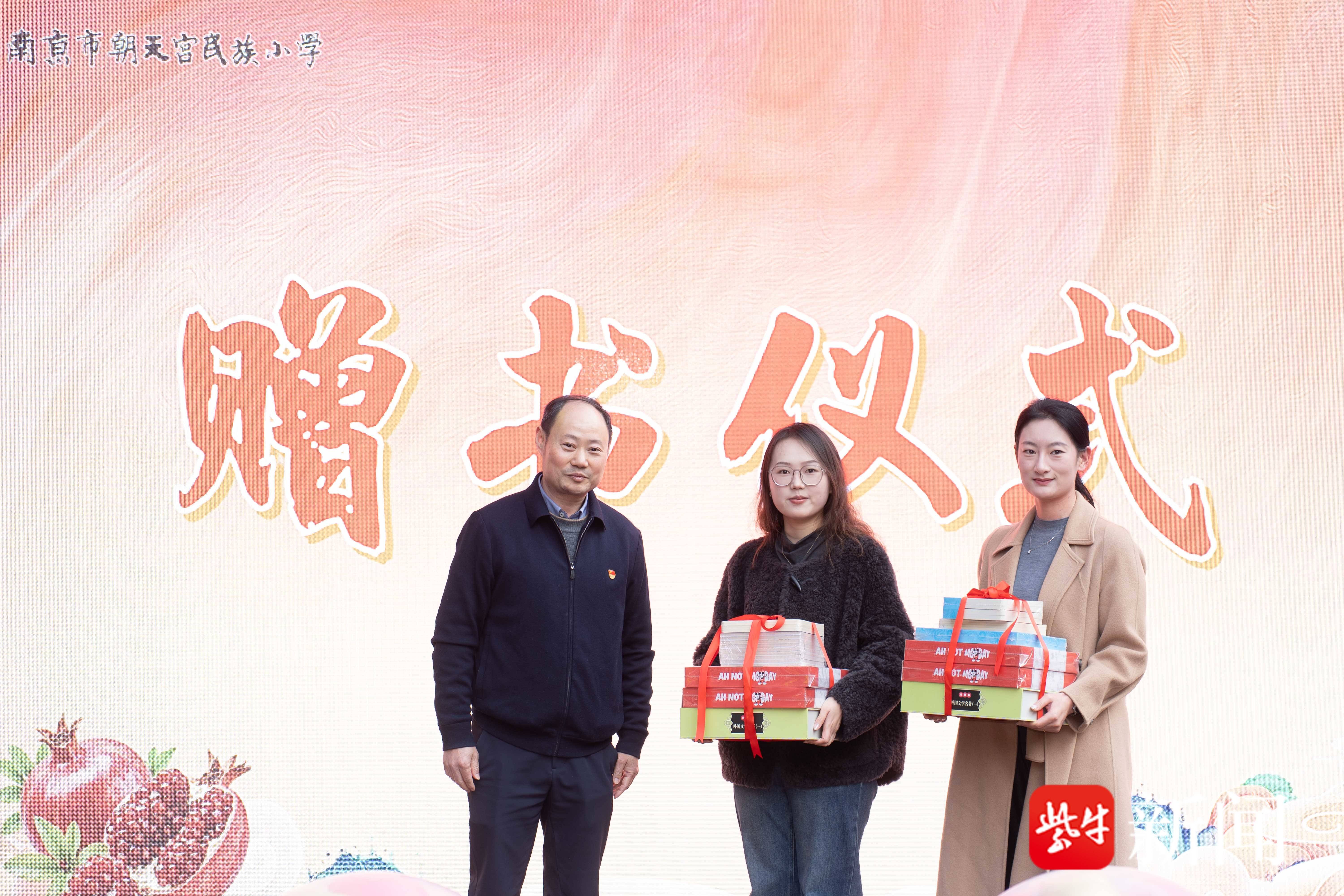 自2025年1月,南京市朝天宫民族小学与新疆、西藏、贵州、湖北、云南等省(区)民族小学共同成立“铸牢中华民族共同体意识同心圆教育联盟”,通过同读一本书、同观一个展、同过一个节等活动开展丰富教育活动。活动现场,中国邮政集团有限公司南京秦淮玄武区分公司副总经理田鹏向同心圆教育联盟所有学校进行了图书捐赠,伊宁市第二十三小学张梦雪校长和伊宁市第五小学朱玥敏校长代表联盟校上台接受了这份珍贵的礼物。活动还特别设立荣誉颁发环节,表彰了一批热爱非遗文化、积极传播中华优秀传统的学生“小宣讲员”。
