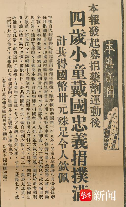 永恒的记忆|澳门老报纸记录感人一幕:85年前澳门四岁小童捐出存钱罐抗日