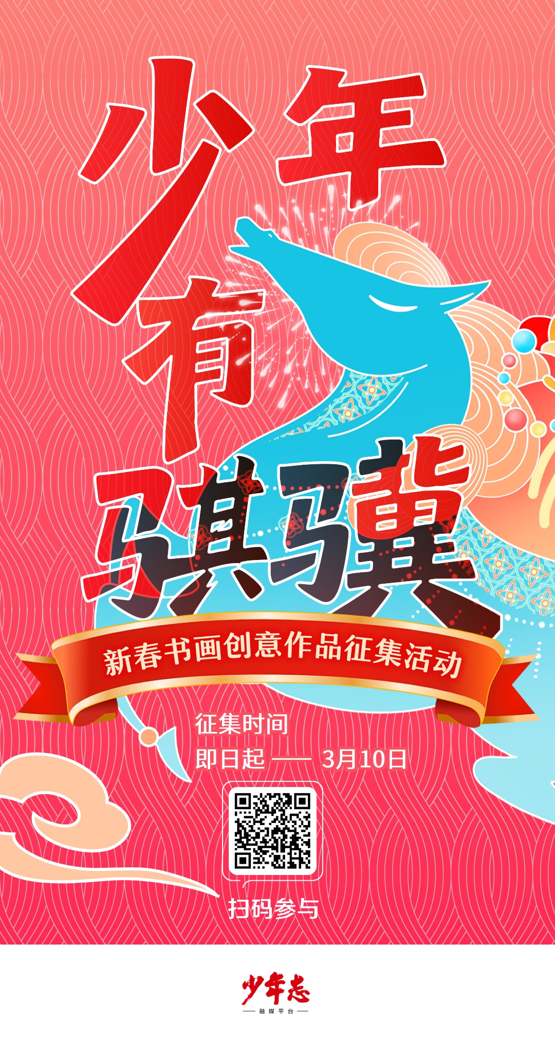 骐骥踏春归,笔墨绘新程!伴着2026马年新春即将到来的脚步,少年志融媒平台特别策划推出少年有骐骥·2026新春书画创意作品征集活动,诚邀广大青少年以笔墨为翼,以创意为马,在书画世界里驰骋灵感,书写新春祝福,勾勒未来愿景。