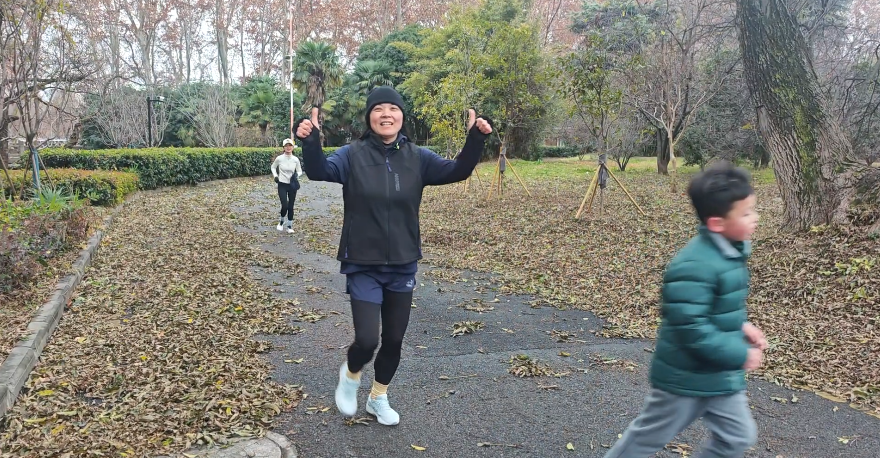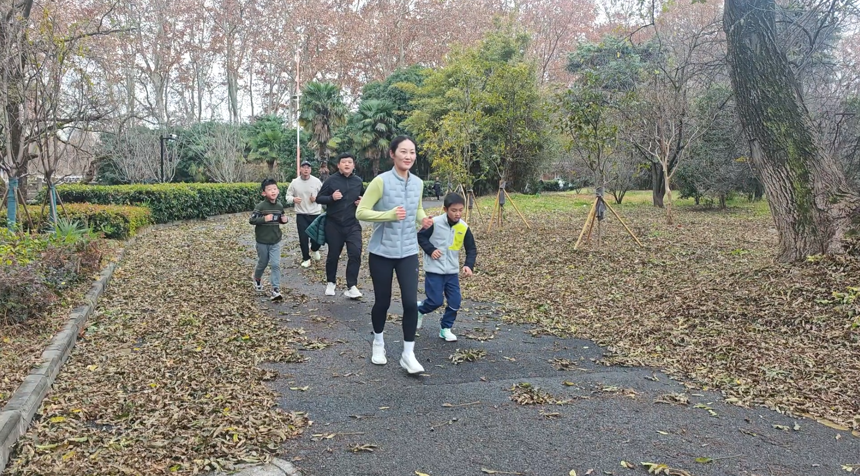 作为2025年的收官活动,跑团将训练场从奥体中心搬至被誉为“世界冠军摇篮”的南京体育学院。在专业教练的带领下,家长与学生共同完成了3公里的校园例跑,冬日的清晨寒意虽浓,但孩子们的热情却丝毫不减,奔跑的步伐声与家长们的鼓励声交织在一起,让原本静谧的场地瞬间充满了运动的活力。