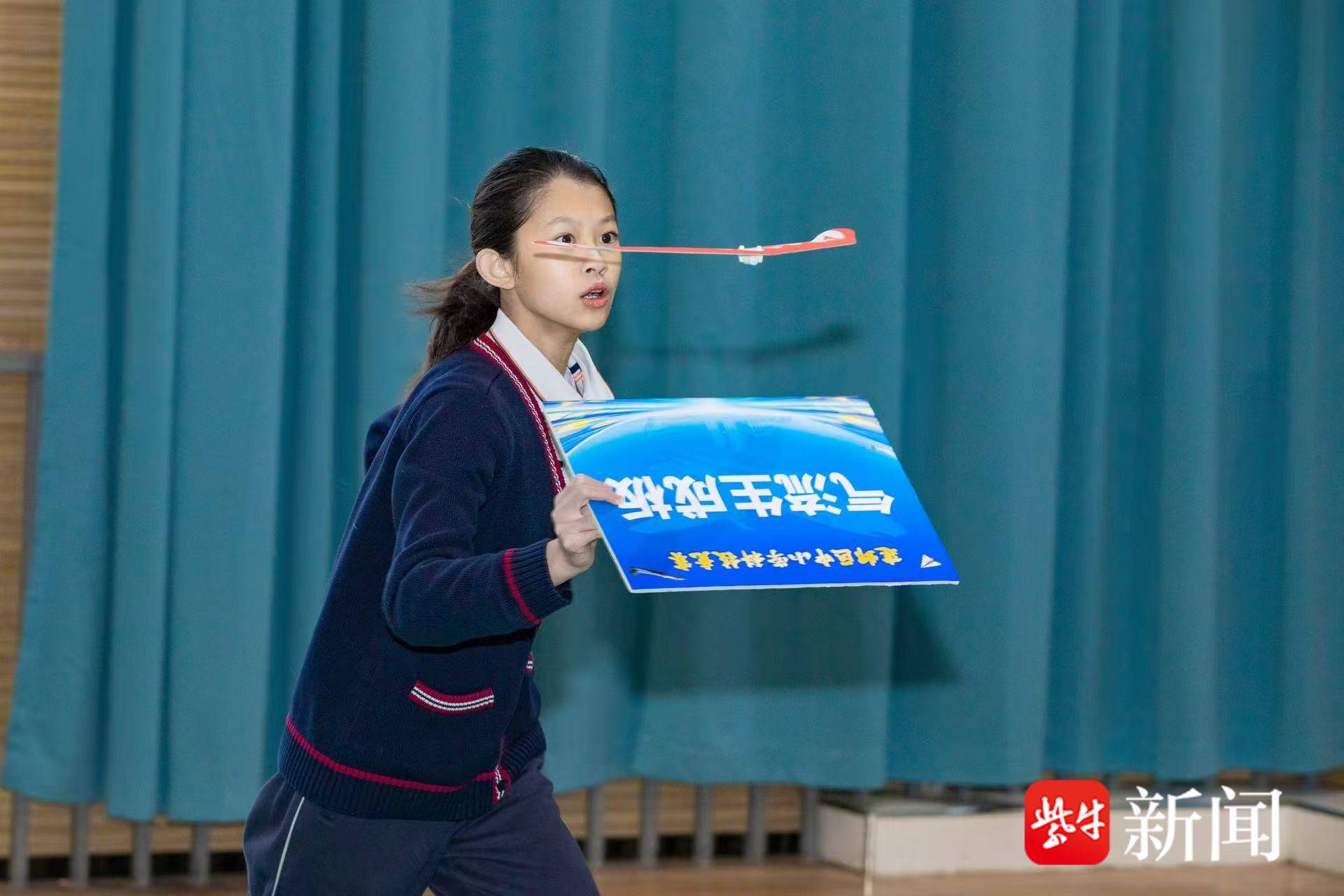 南京市中华中学附属小学岳守晏在悬浮纸飞机绕标挑战赛中表现不俗,从头到尾,纸飞机都没有落地。两次4分钟稳稳地绕了8圈,并进入了目标圈内。“去年,我只绕了2圈,今年进步很大,属于超长发挥。”岳守晏告诉记者,别看赛场上他游刃有余,其实还是很紧张的,腿现在还在发抖。