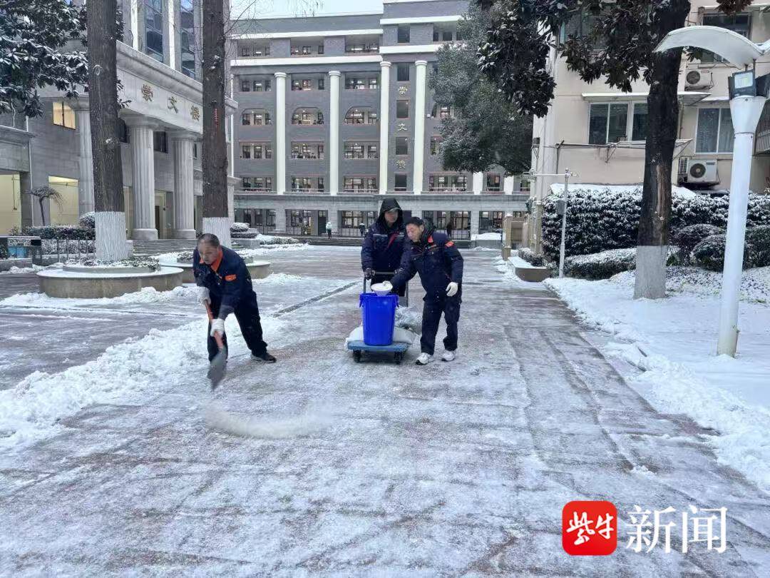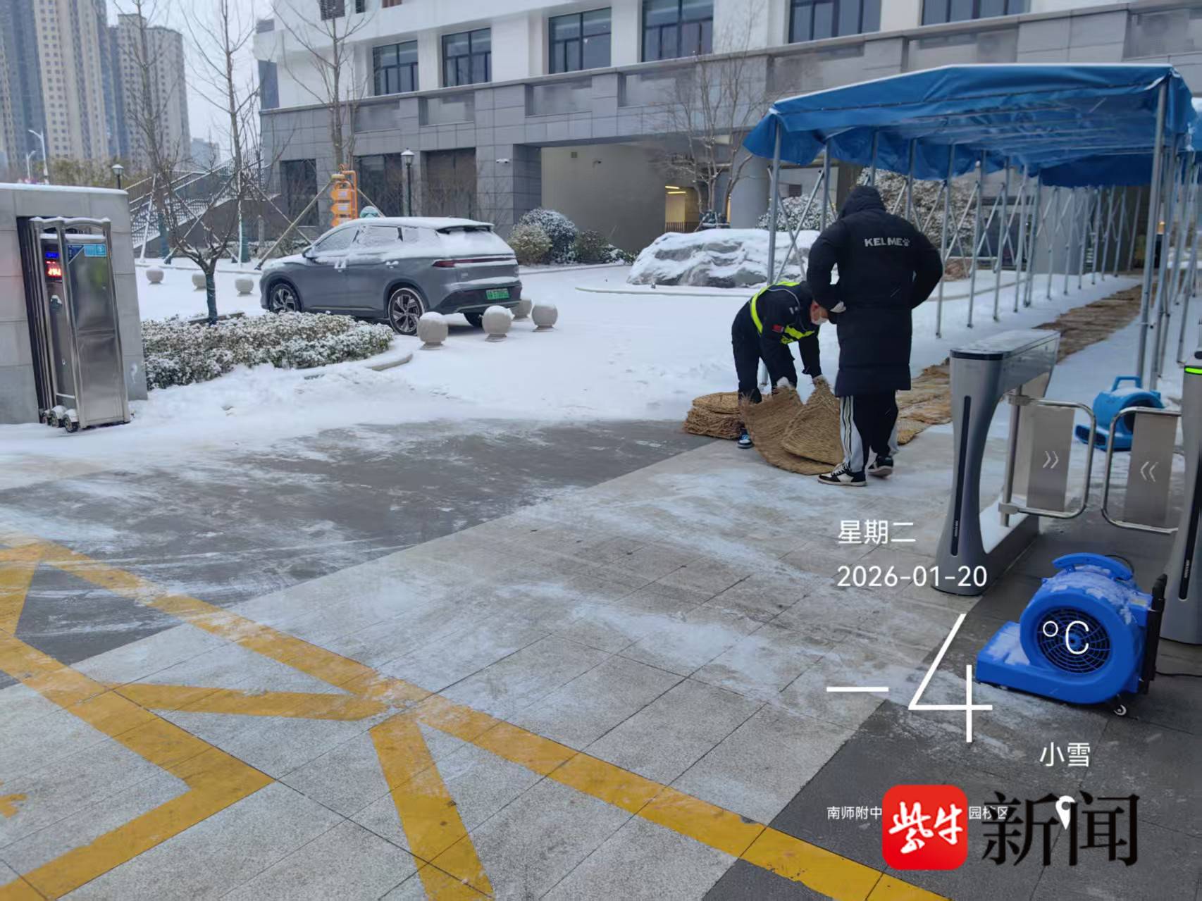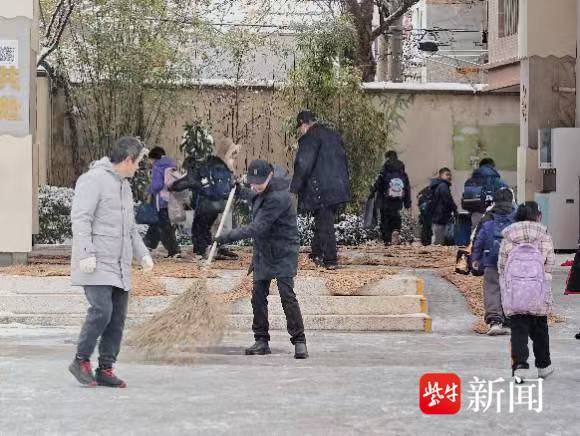 1月20日清晨,雪后南京美成了金陵,天气很冷,孩子们上学的心情却多了几份兴奋和雀跃。为保障孩子们顺利入校,一大早,南京各中小学就行动起来,扫雪、撒盐、铺草垫……校园里一片热火朝天。