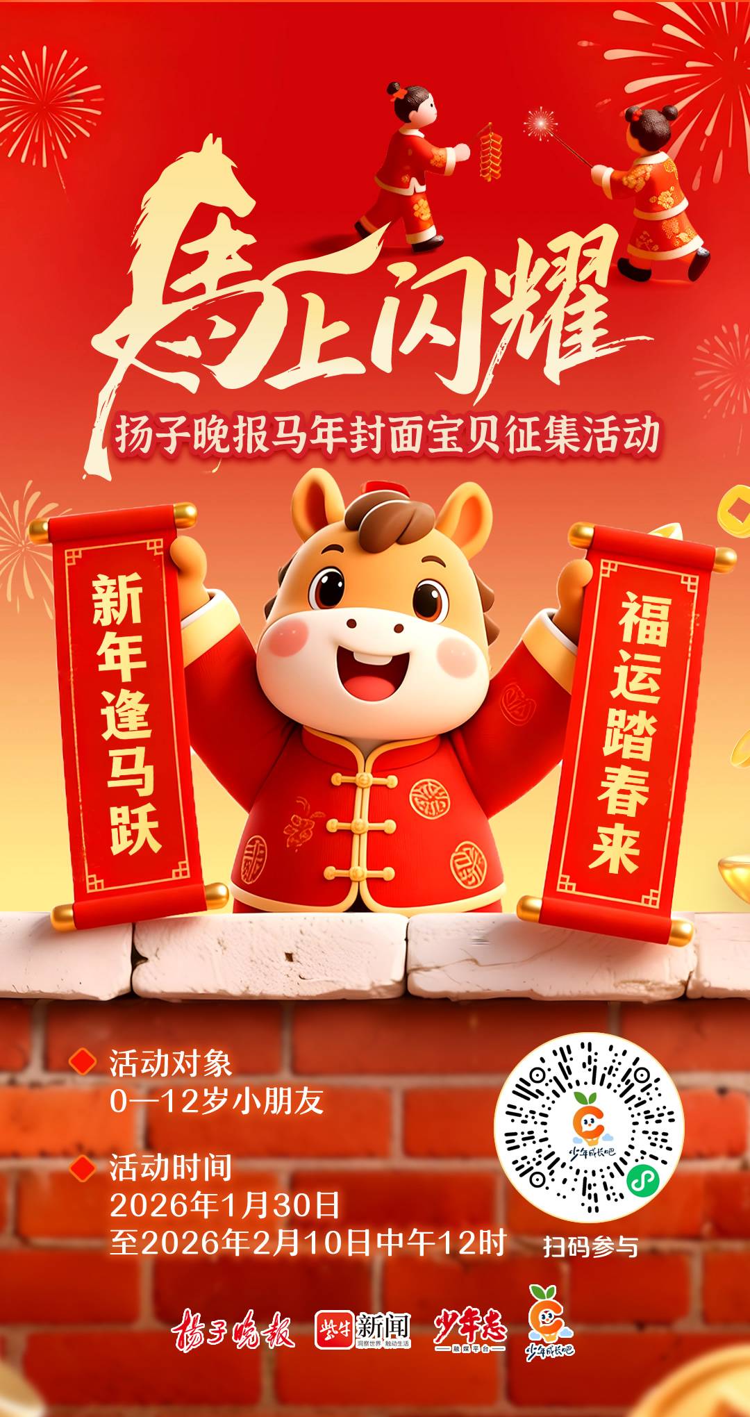 2026年农历丙午马年的脚步声越来越近,扬子晚报一年一度温暖万千家庭的“封面宝贝”活动正踏着新春的节拍火热征集中。今年,“马上闪耀”的主题为这份延续十六载的新年之约注入蓬勃生机——我们正面向所有0-12岁的萌娃发出最诚挚的邀请,期待用最灿烂的笑脸点亮马年第一缕晨光。