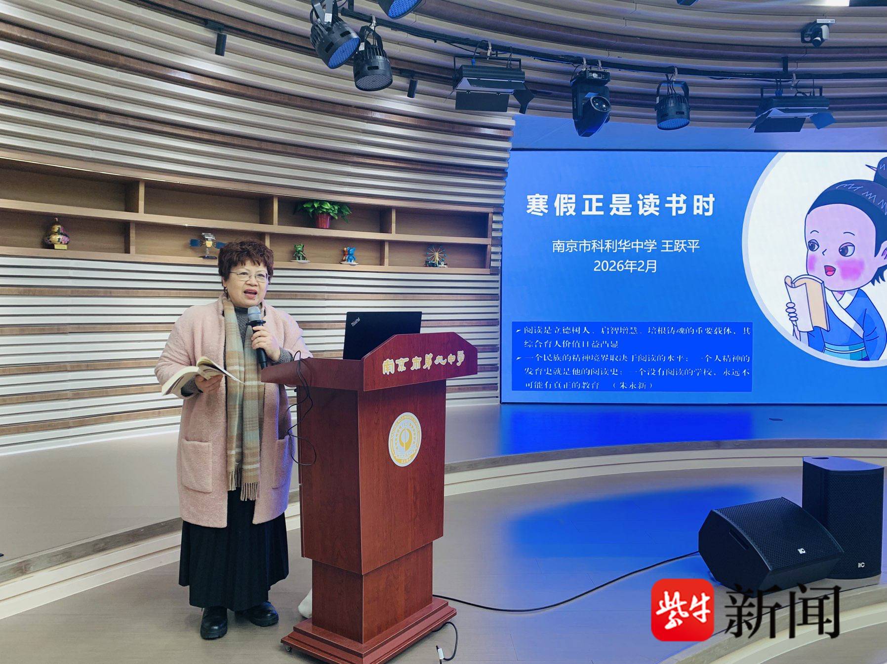 上午8时,首场学科讲座在三楼演艺厅准时开讲。江苏省语文特级教师王跃平以“寒假正是读书时”为主题,围绕“如何整本阅读名著”展开指导,现场座无虚席。学生们凝神聆听、认真记录阅读方法,听到关键处纷纷点头共鸣。讲座结束后,一楼的“名师交流区”很快围满了同学,王老师与学子们围绕名著阅读、寒假计划等话题展开面对面交流。一位学生分享道:“老师不仅教我们怎么读,更带我们看见文字背后的生命体验,这个寒假我知道该怎么安排了。”