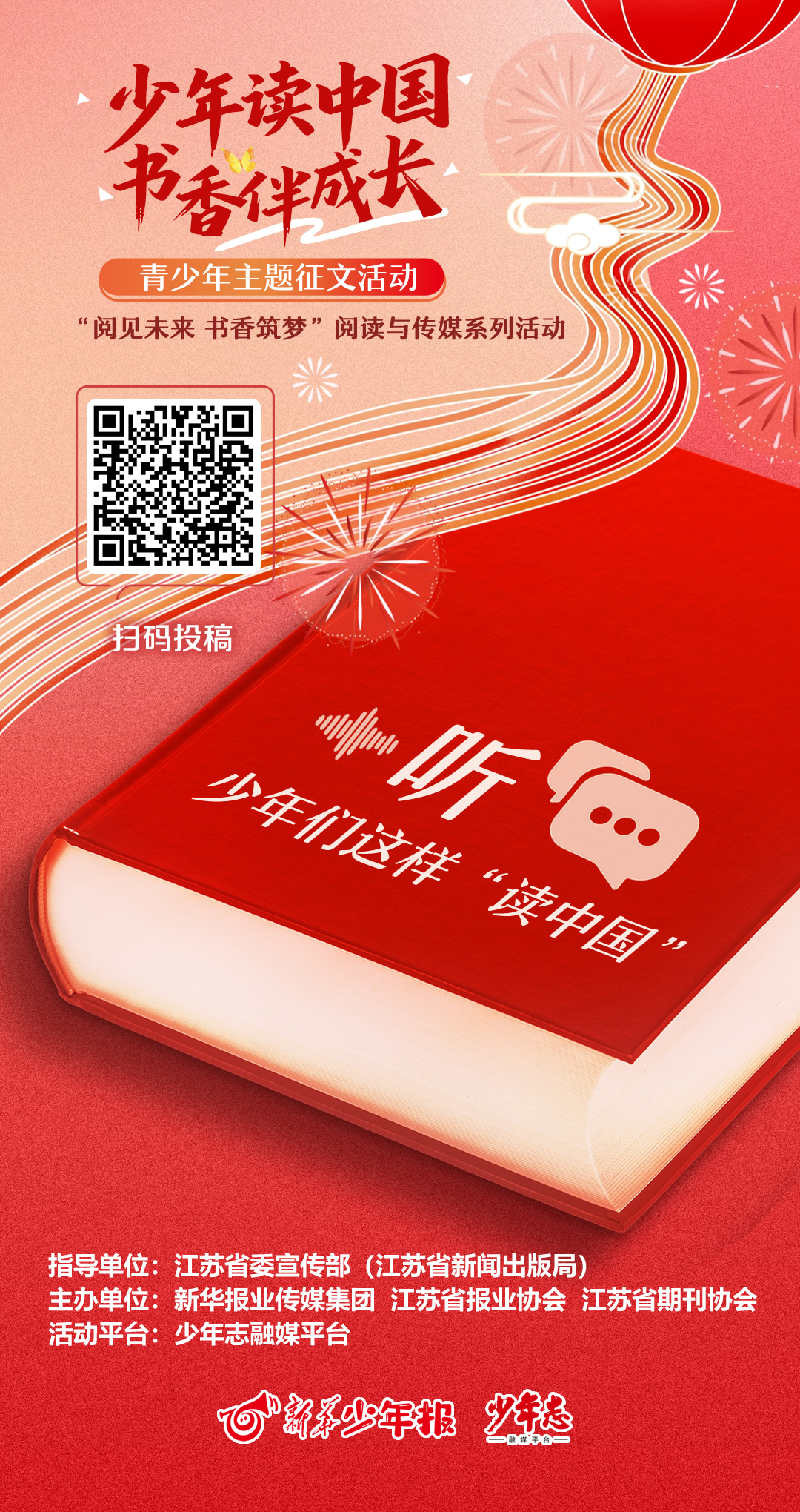 据悉,2026年3月31日前,全省中小学生均可扫描文中二维码参与活动投稿,学校集体投稿可发送至邮箱:shaonianzhi2024@163.com。优秀作品将有机会在《扬子晚报》《新华少年报》等权威媒体刊登展示,获奖作者代表还将受邀参加线下阅读与媒体交流会。欢迎广大青少年踊跃参与!