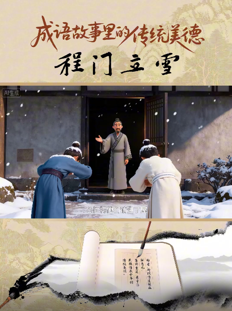 作为面向青少年打造的传统美德系列课程,主创团队创新运用AI技术还原历史场景,让流传千年的成语故事变得鲜活可感。20个成语故事分类呈现、各有侧重,既有“匹夫有责”“鞠躬尽瘁”的忠义担当,也有“布衣蔬食”“克勤克俭”的勤俭本色;既有“程门立雪”的尊师谦逊、“百里负米”的孝心赤诚,也有“囊萤映雪”“韦编三绝”的勤学坚守。