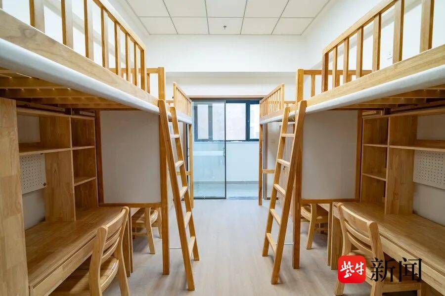 在建造工艺上,二十九中新校区全面采用装配式施工工艺,综合使用轻质隔墙板、预制梁板柱、阻尼墙等构件,装配率达45%。其中,学生宿舍采用装配化装修,摒弃了传统装修先抹水泥砂浆再铺贴瓷砖的模式,采用集成化装修方案,减少了现场湿作业。