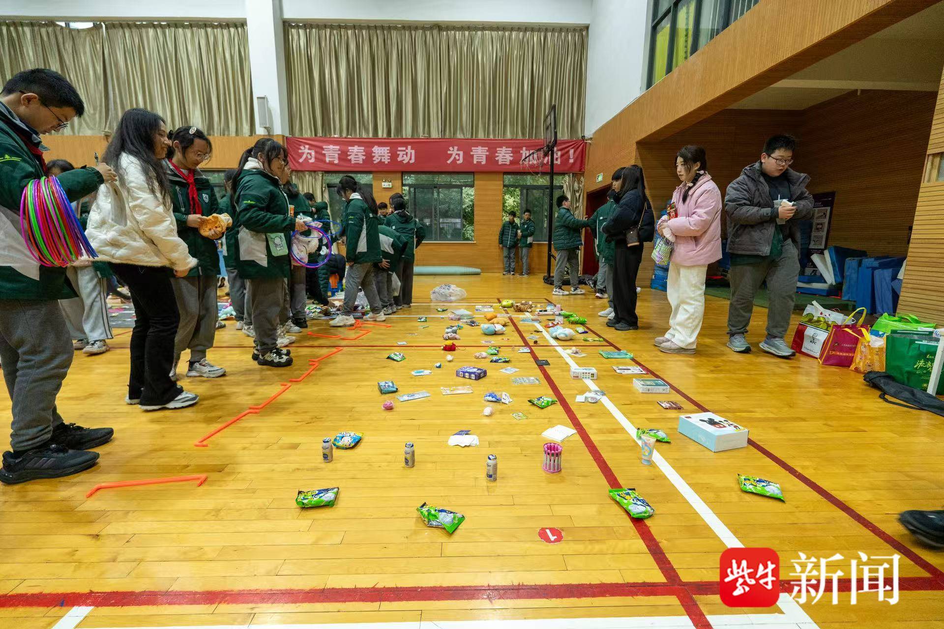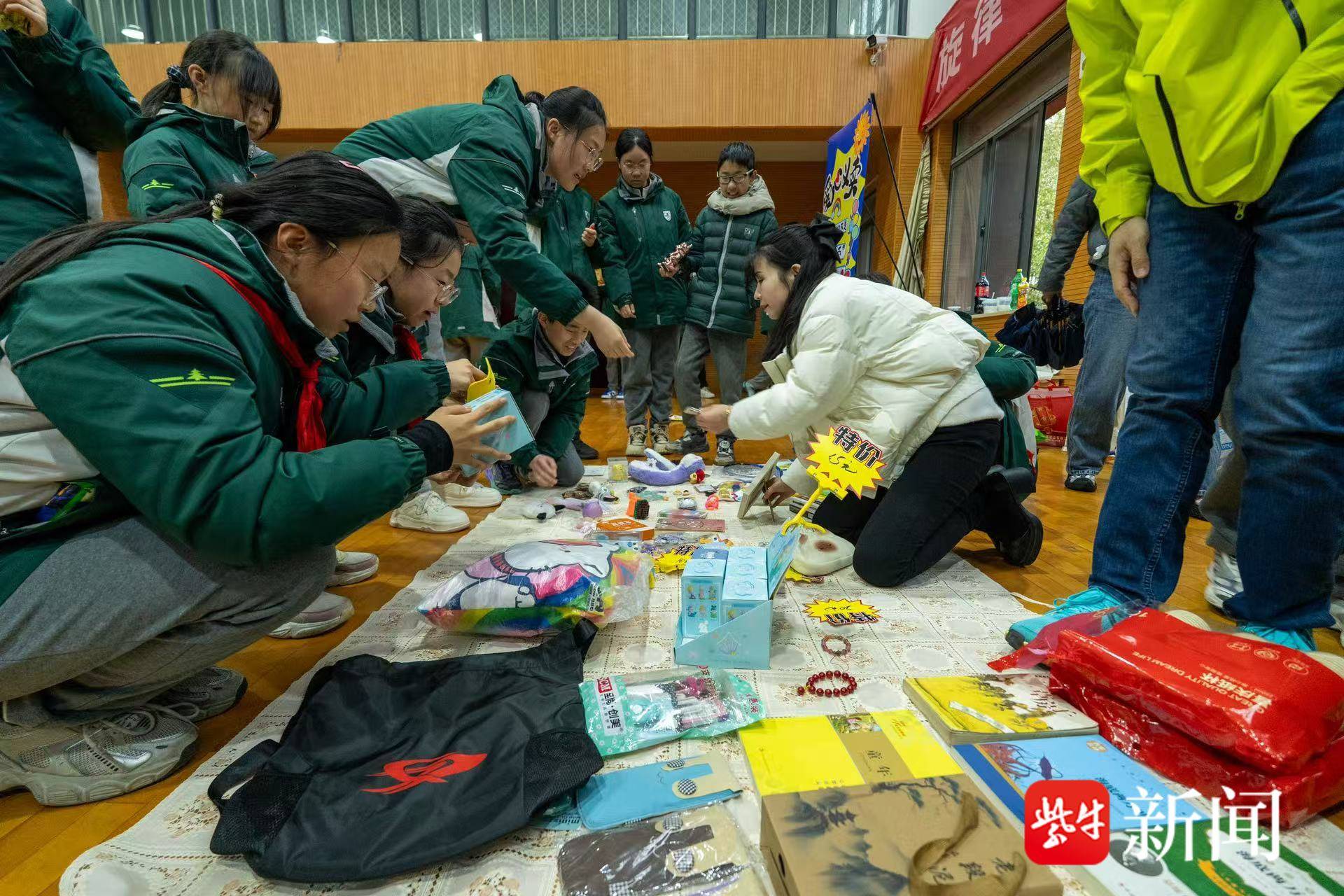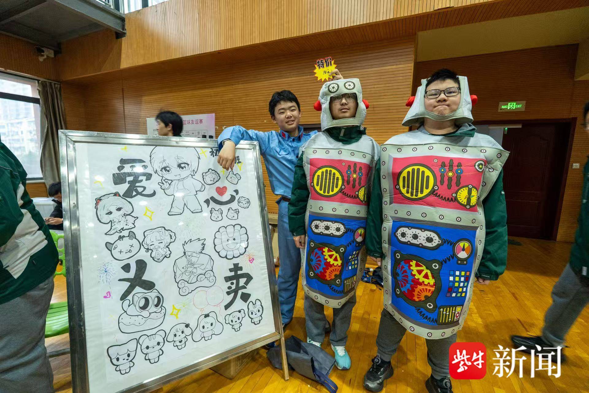 3月16日下午,南师附中新城初中怡康街分校的体育馆二楼变成了一片“爱的集市”。在一个精心布置的摊位前,初二(7)班陈鋆同学将一盆由铁丝、珠片与巧思交织而成的紫色手工花轻轻摆正。她眼中透着一份坚定的温柔:“摆出来好看,买的人才会多,就能多帮到一个人。”