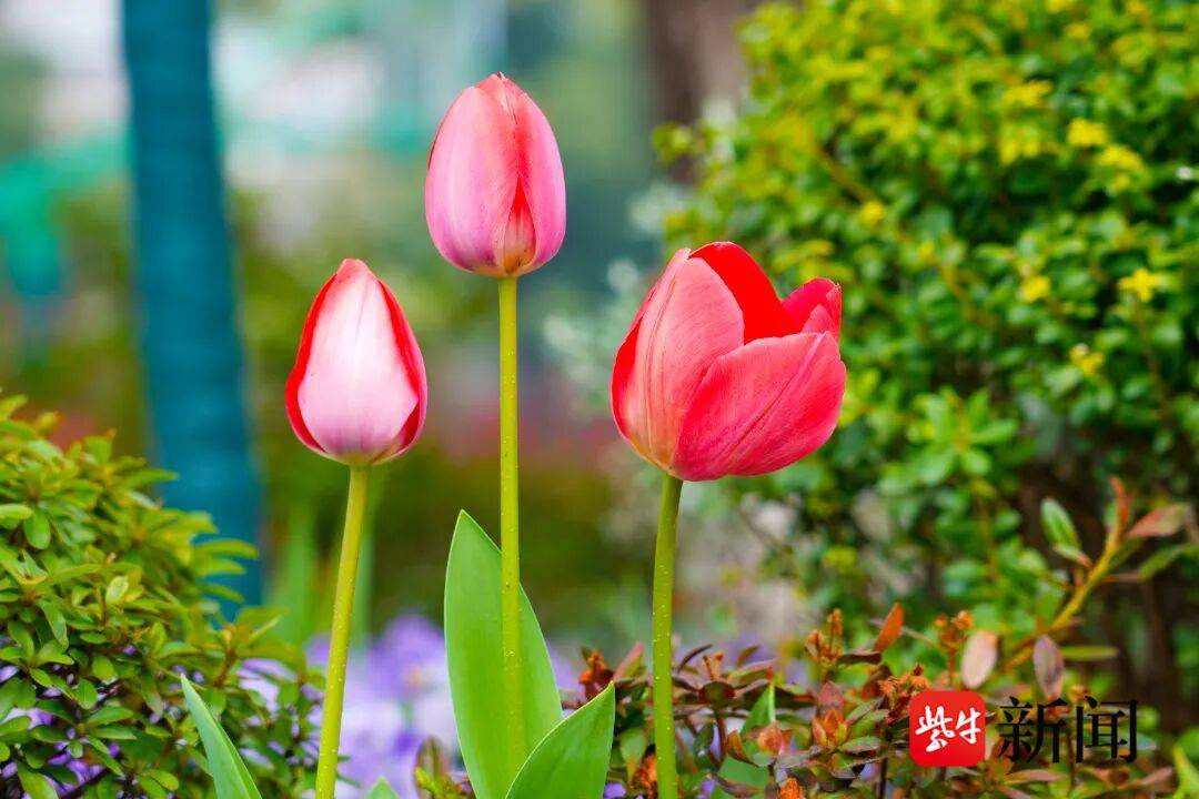 行健楼前的紫叶李开的时候,不喧闹, 不张扬。惟有风起时,拂落的花瓣告诉人们,它与这个春天正在经历一场不声不响的美好遇见。郁金香饮了半杯春雨,便把春天写成了最热烈的诗!