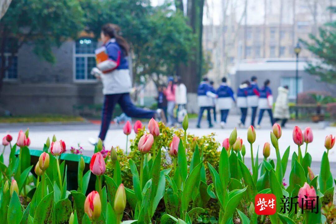 春风有信,时已春分,昼夜均而寒暑平。此时的金中校园,海棠吐蕊、玉兰灿然、郁金香含苞待放、紫叶李纷飞如雪……这一日,将时光平分一半给花开,一半给青春。
