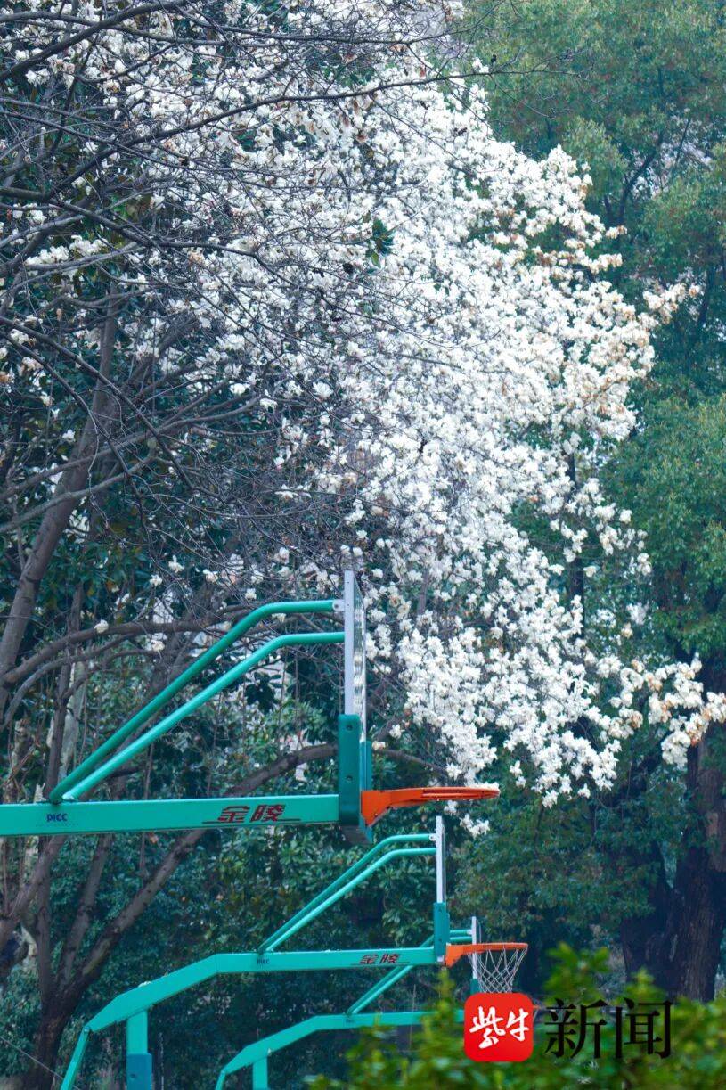三月里篮球场边的玉兰花高高地开在枝头,簇拥的花瓣如玉盏,盛满春风,敬这青春!