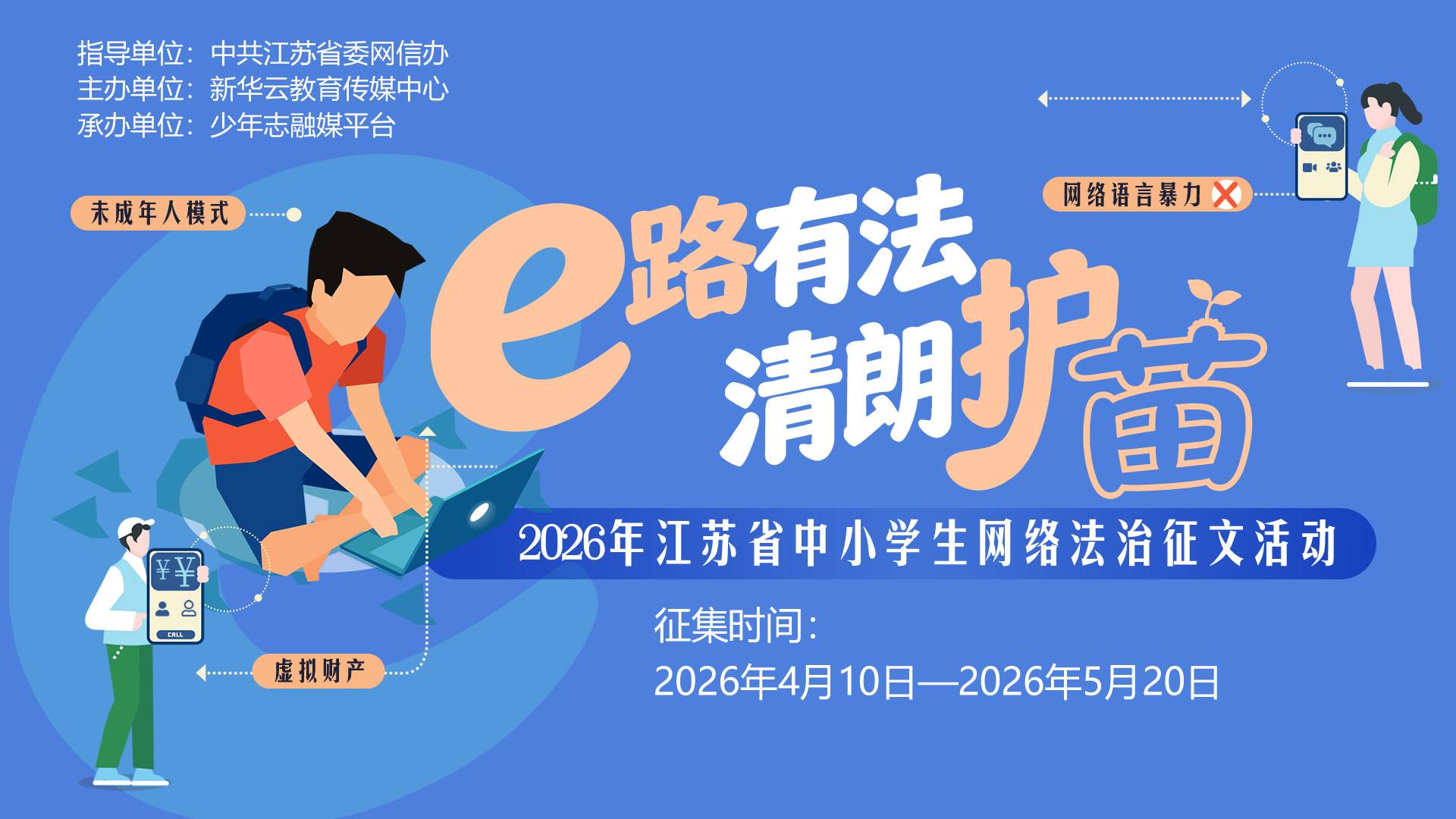 “e路有法 清朗护苗”!2026年江苏省中小学生网络法治征文活动正式启动