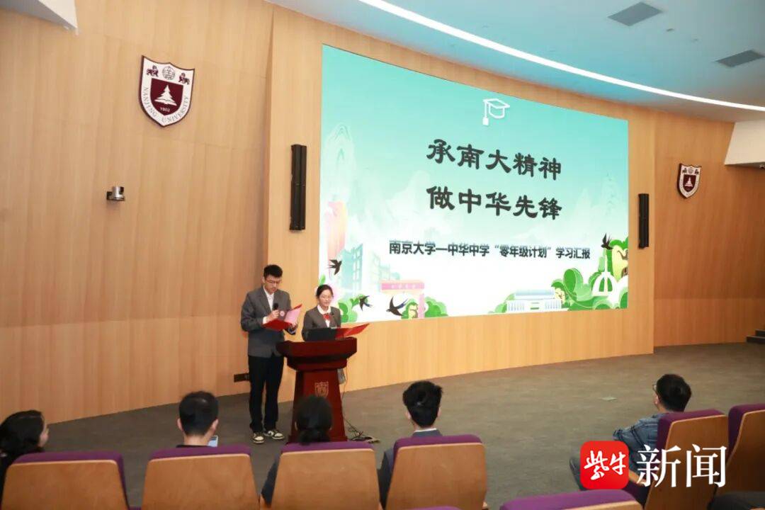 随后,四位学生代表走上讲台,汇报这一年的学习成果。台下,南大的教授们认真听着,不时点头。中华中学高二年级学生朱自勖在分享中说,“在这一年中,我们聆听过来自南京大学不同学院教授的卓越讲坛,接触各领域前沿技术,更系统学习了地球科学与工程学院教授们为我们量身定制的零年级课程。我的选科是物化地,正是这些先修课程的体验促使我做出了这个决定。”