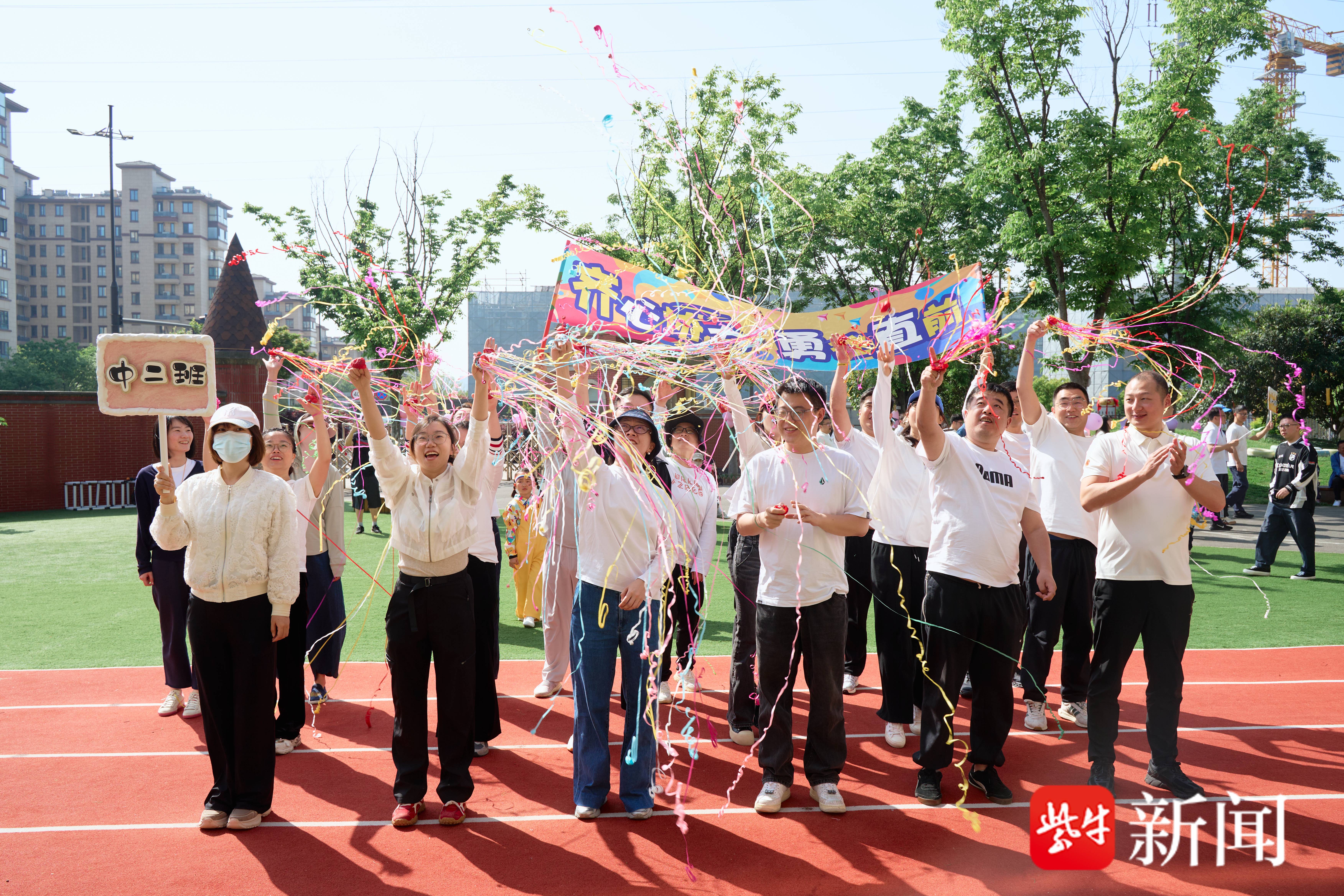运动会开幕式上,各个班级的创意方阵精彩亮相。活力紫、清新绿、阳光黄……特色方阵迎面而来,孩子们手举气球、风车,喊着稚嫩响亮的口号,一张张笑脸比春日暖阳还灿烂。有的班级还设计了专属的班服,将每个同学的头像印制在班服上,定格童年美好;有的班级集体化身软萌“小黄人”,蹦蹦跳跳、元气满满;