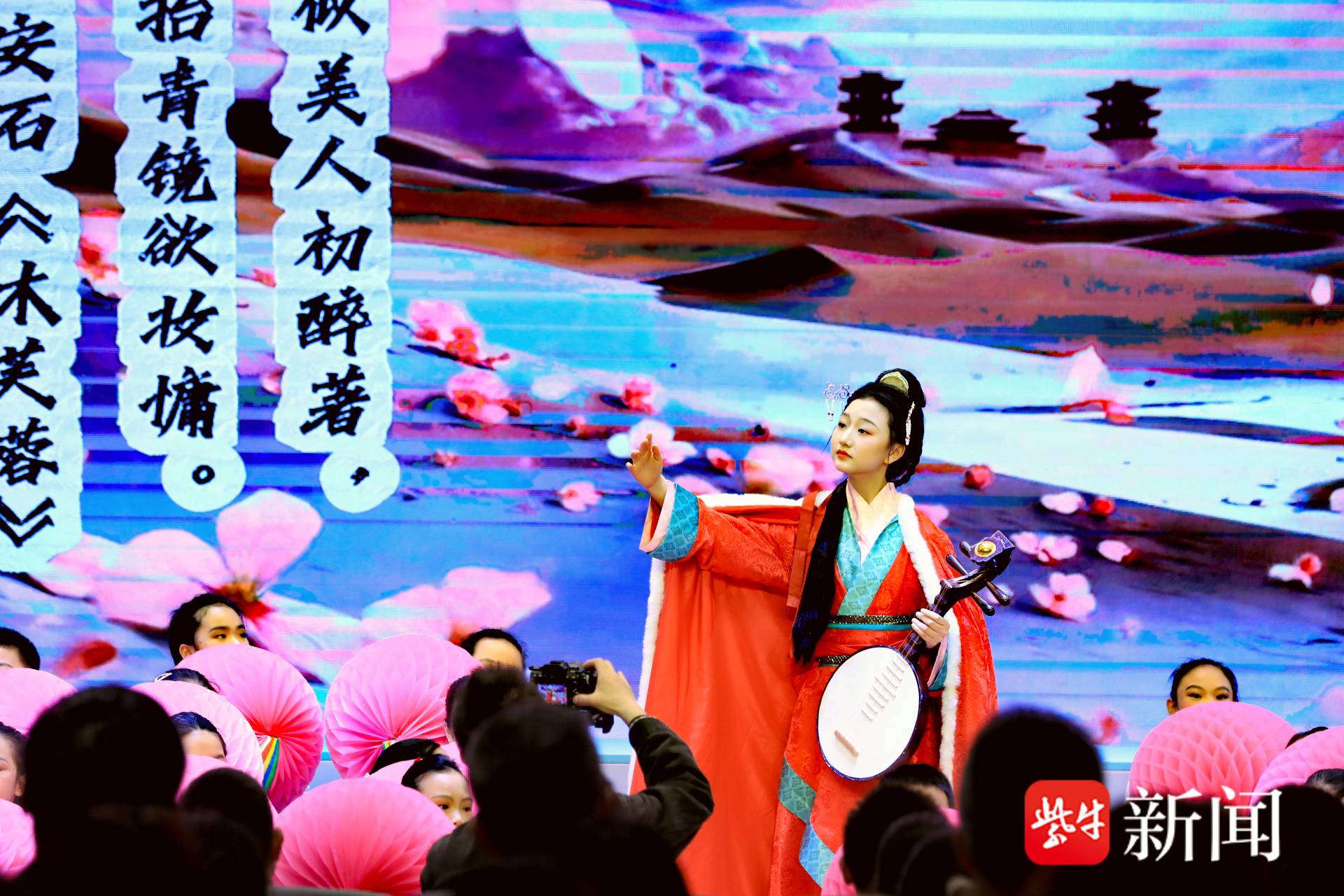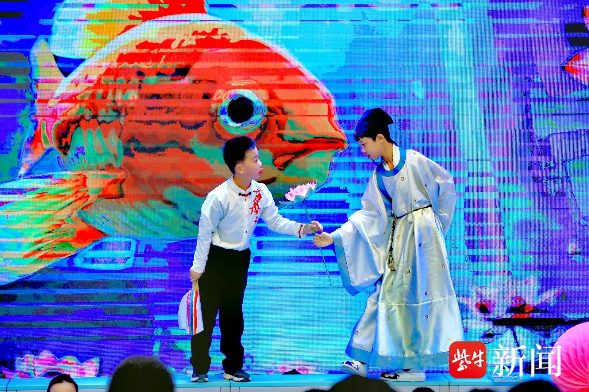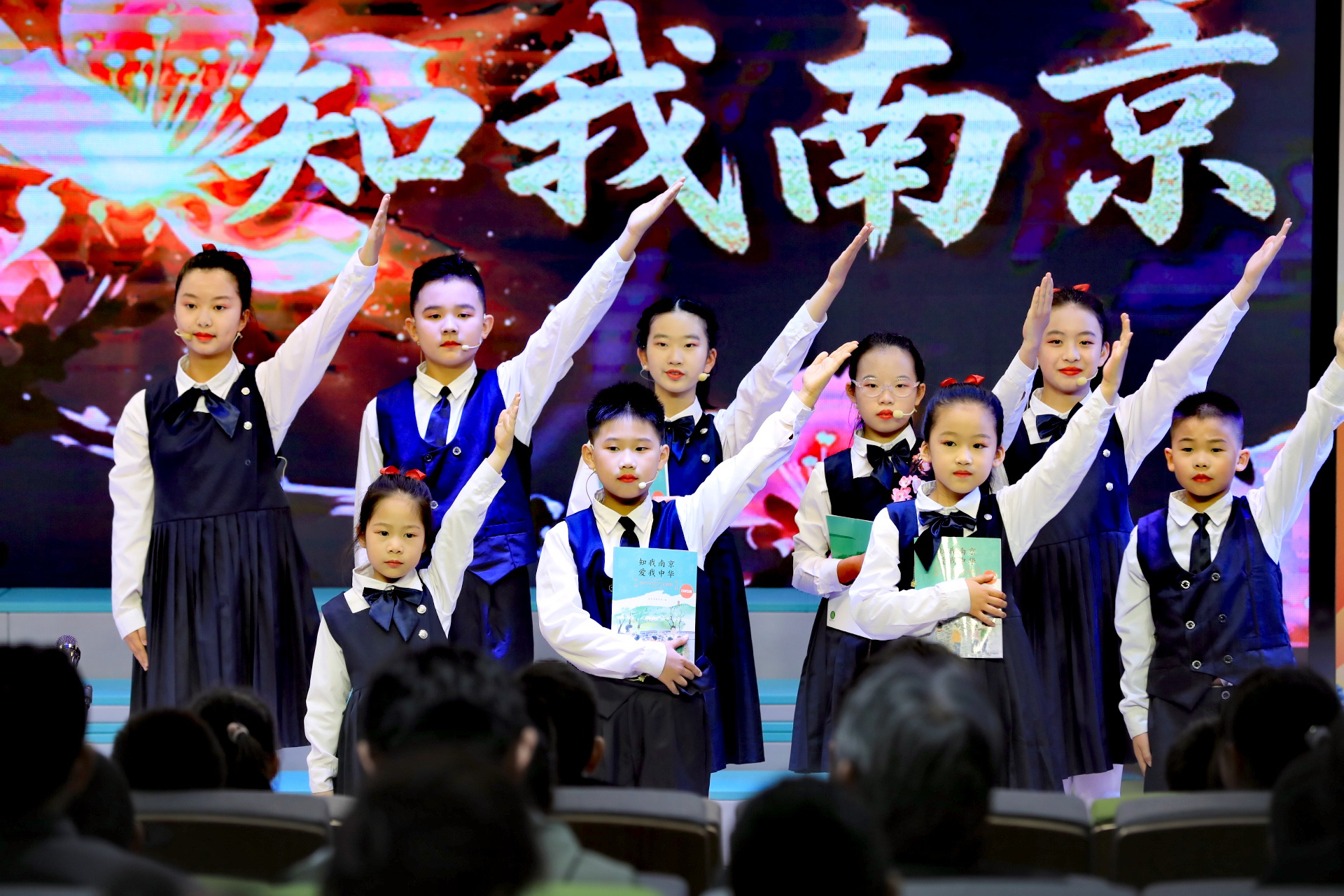科技赋能与文化传承的融合展示成为本次活动的突出亮点。南京市软件谷小学师生们带来的原创节目《文都南京贺花神》灵动登场,孩子们以南京博物院镇馆之宝“十二花神杯”为灵感,将古典诗词与四季风物相融,用灵动舞姿与婉转吟唱勾勒出金陵春日繁花盛景;《悦览金陵 知我南京》沉浸式演绎,带领观众品读南京从六朝文脉到现代风华的城市底蕴。南京师范大学附属中学雨花台学校(初中部)带来情景朗诵《可爱的中国——跨越时空的告白》,同学们以方志敏烈士经典红色名篇《可爱的中国》为核心,通过深情朗诵、情景对话回望革命先辈的赤诚坚守,抒发对祖国的无限热爱,真挚的演绎打动了全场观众。