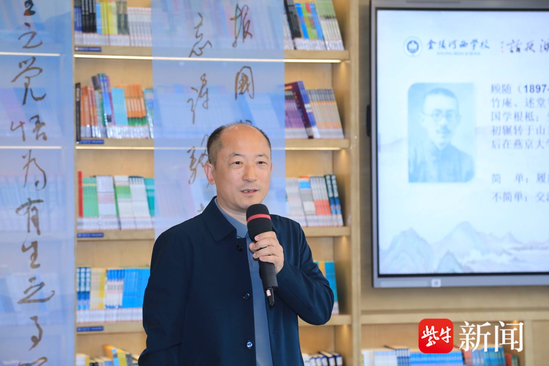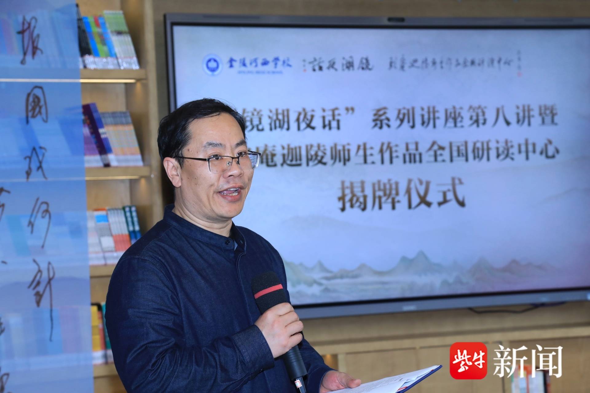 4月23日,世界读书日,南京市金陵河西学校校园内诗意盎然。驼庵迦陵师生作品全国研读中心在南京市金陵河西学校镜澄书院正式揭牌。南开大学文学院教授、博士生导师张静,河北大学教授、博士生导师、全国顾随研究所所长赵林涛等高校学者齐聚一堂,共同见证这一文化盛事。