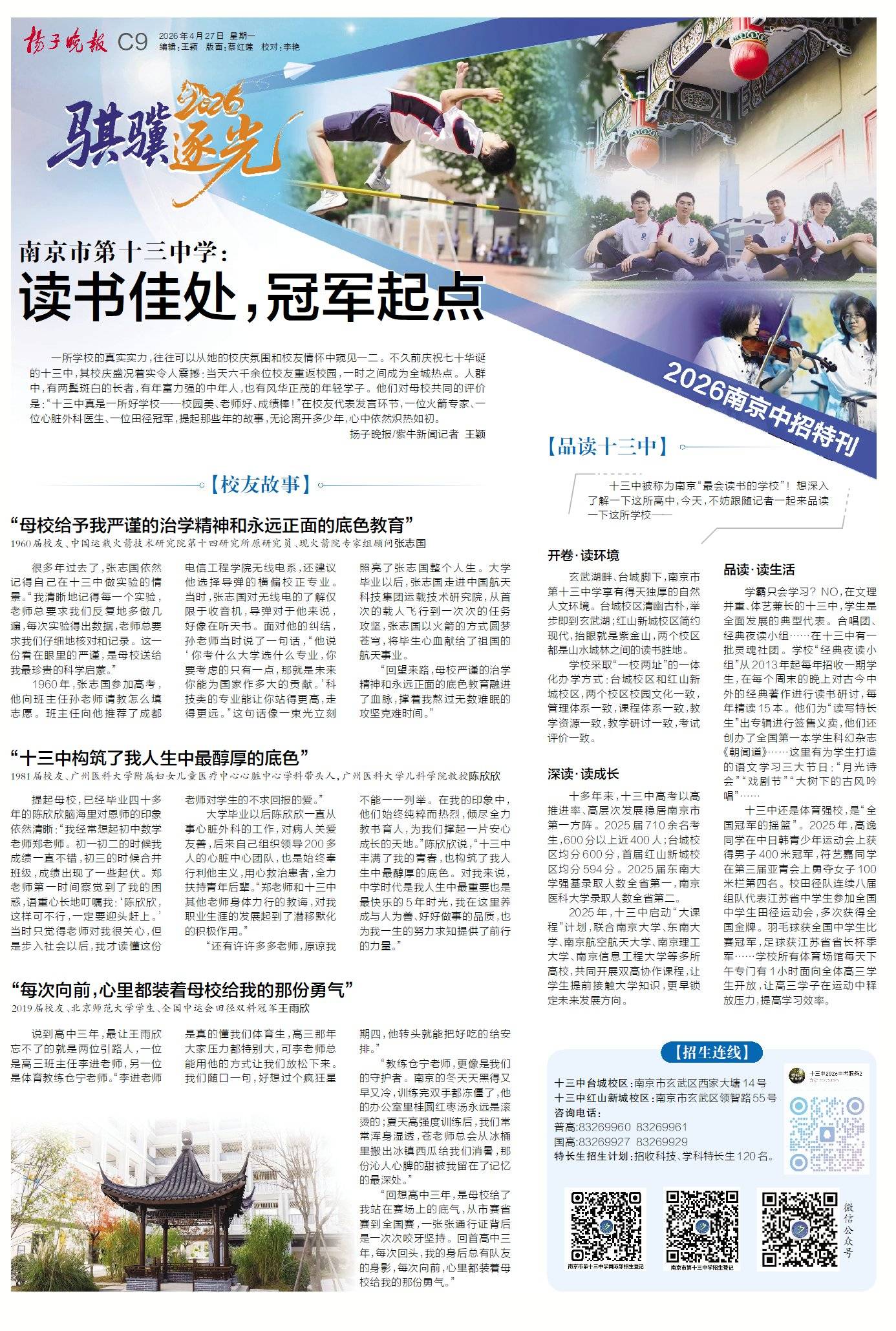 【骐骥逐光】南京市第十三中学:读书佳处,冠军起点