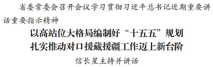 会议传达学习了习近平总书记在听取西藏自治区、新疆维吾尔自治区党委和政府工作汇报时的重要讲话精神,强调,党的十八大以来,习近平总书记从党和国家事业发展全局的战略高度,亲自为西藏、新疆工作把舵定向。总书记的重要讲话具有很强的政治性、指导性和针对性,是新时代党的治藏方略和治疆方略最新成果。要完整准确全面贯彻新时代党的治藏方略和治疆方略,进一步增强做好对口支援工作的政治自觉和使命担当,确保党中央决策部署落到实处、见到实效。要紧扣铸牢中华民族共同体意识主线,实施更多民生工程,促进各民族交往交流交融,让江苏与西藏、新疆群众的心贴得更近。要聚焦高质量发展首要任务,深化产业协作、园区共建、清洁能源开发等领域合作,科学编制“十五五”对口支援规划,推动我省援藏、援疆工作迈上新台阶。