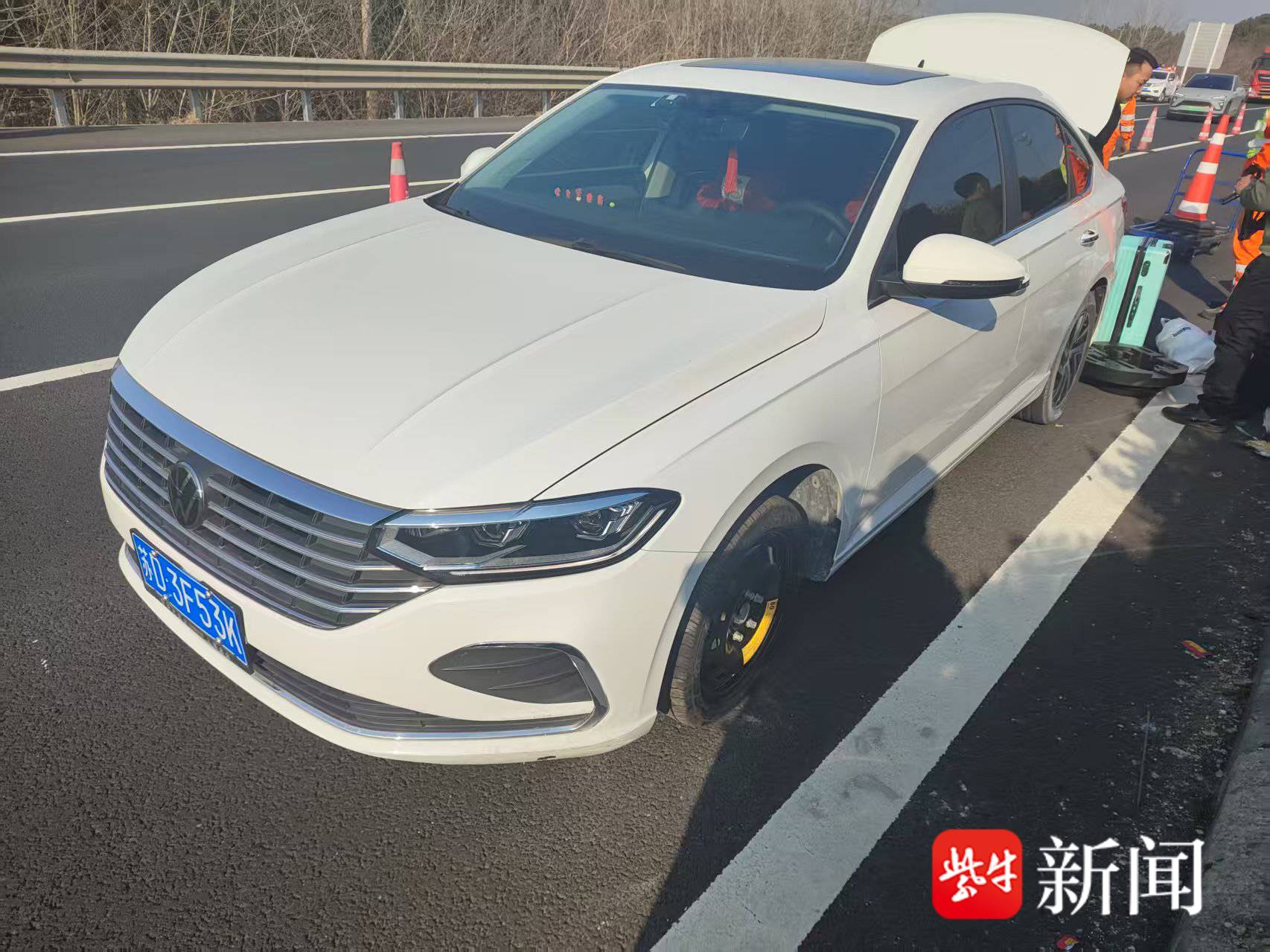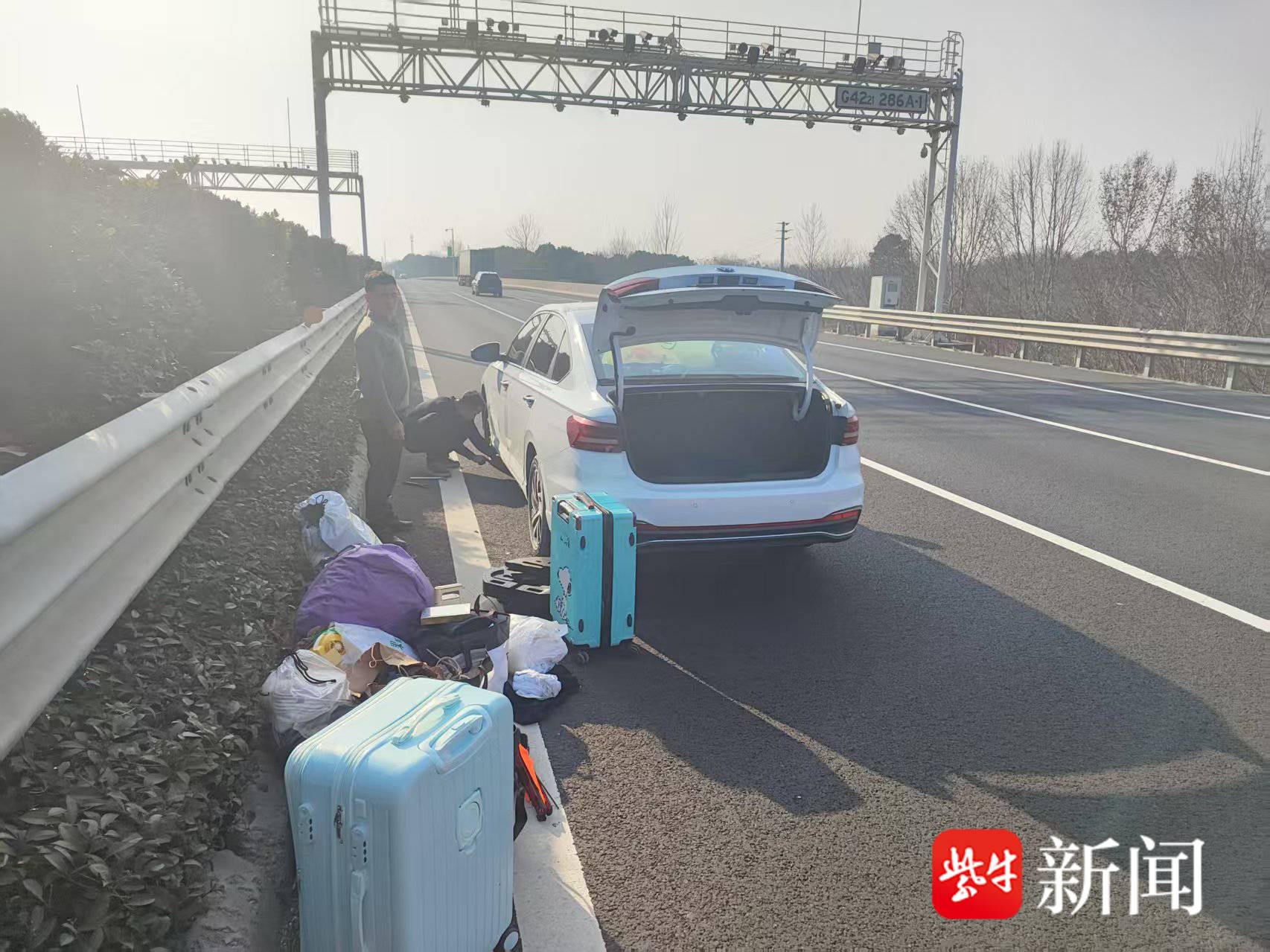 1月16日14时许,在沪武高速由东向西K279处上演惊险一幕:一辆小型客车因左前轮爆胎,随即驾驶员冯女士竟直接停在了车流湍急的快车道上,仅放置了一个三角警示牌后,便与乘车人员开始就地更换轮胎,全然不顾身旁疾驰而过的车辆,现场险象环生。