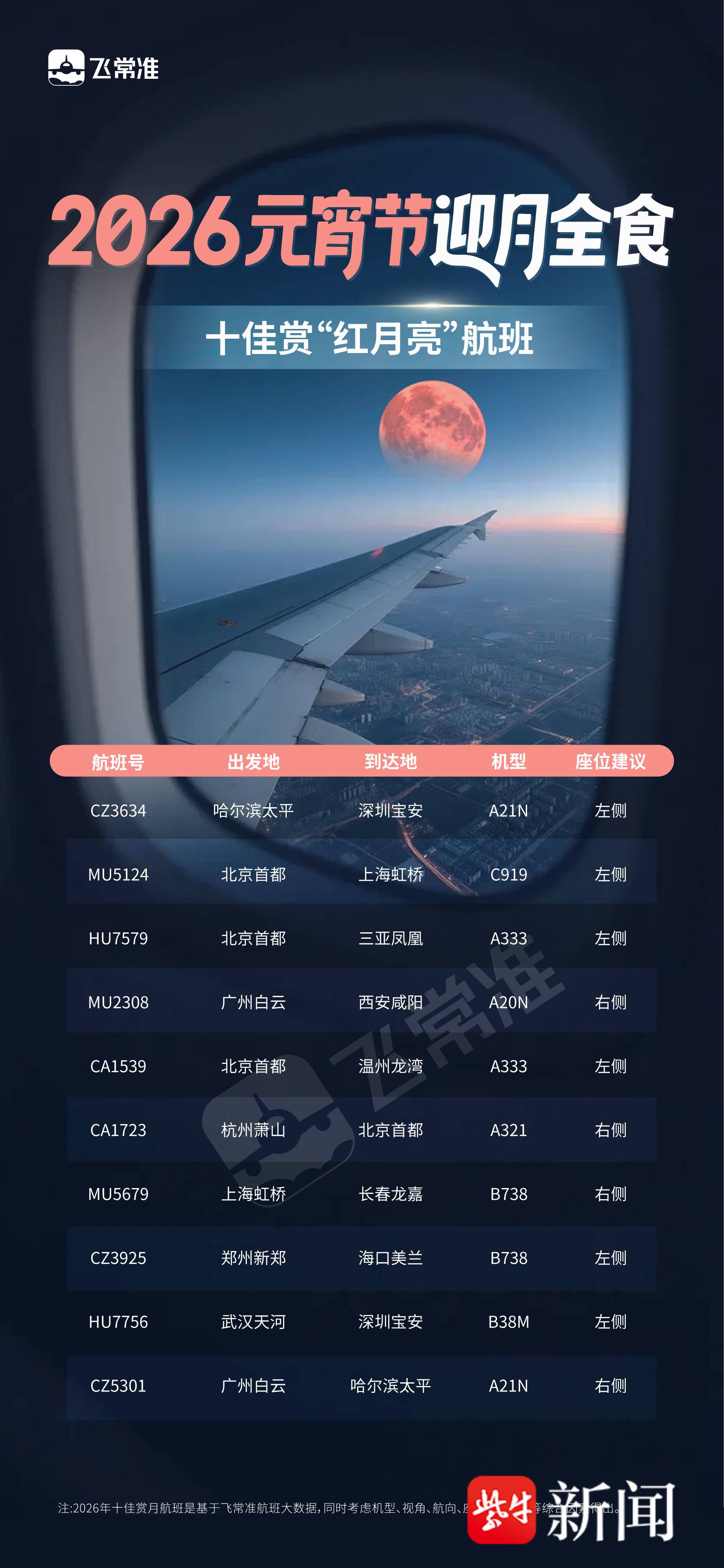 2026元宵节迎月全食,十佳赏“红月亮”航班来啦!