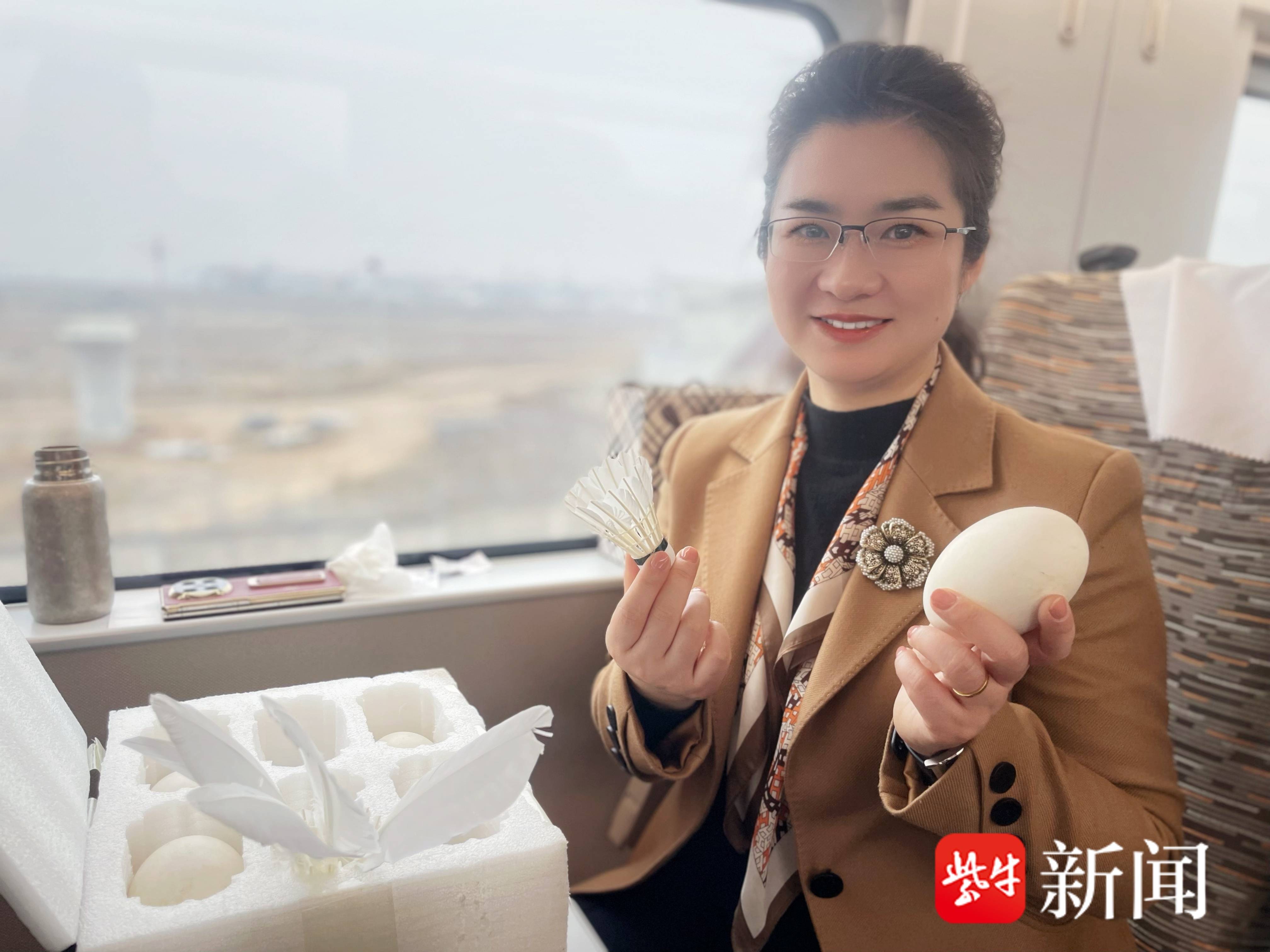 3月3日,赴京高铁上,全国人大代表鲁曼的行囊格外特别——除了厚厚的履职笔记,还有鹅蛋和用鹅毛制成的羽毛球。