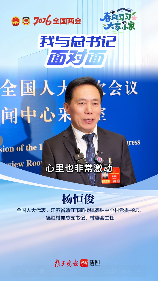 “今天非常荣幸,心里非常激动,把我们德胜村近20年的发展成果向总书记汇报。”江苏省靖江市新桥镇德胜中心村党委书记,德胜村党总支书记、村委会主任杨恒俊告诉扬子晚报/紫牛新闻记者,在和总书记交流中,自己主要从三个方面做了汇报。