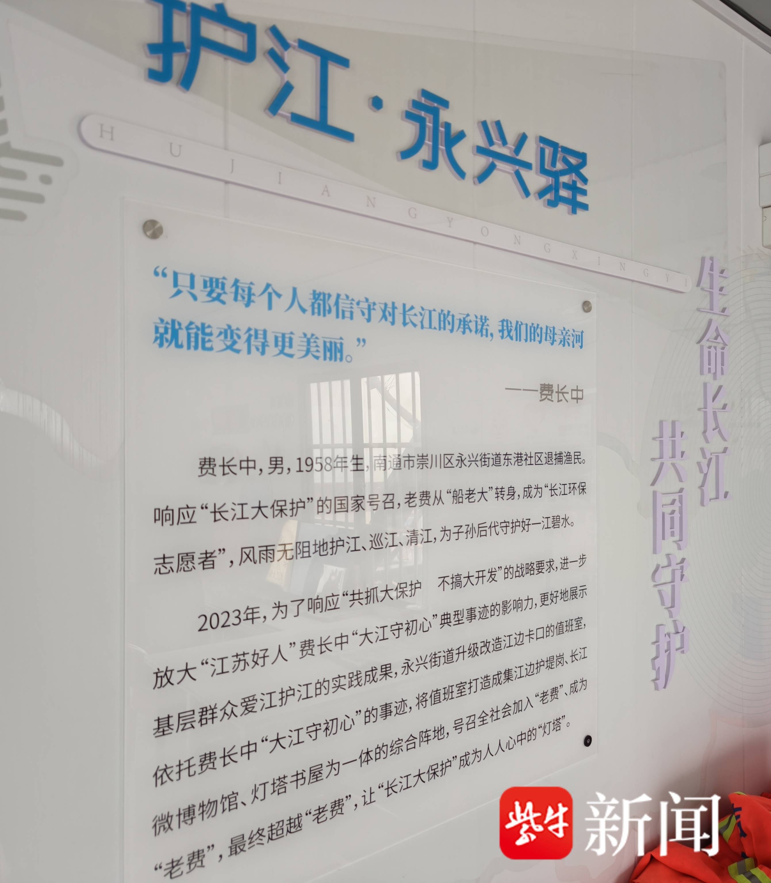 2020年习近平总书记来到南通五山地区滨江片区视察时,曾点赞南通“好通”、沧桑巨变、生活幸福。五山滨江青山绿水、美景如画,成为南通最引以为傲的“城市封面”之一,获评江苏省最美生态修复案例。近年来随着长江大保护深入推进、十年禁渔成效显著,南通长江段水质持续优良,江豚频繁现身,鱼类资源快速恢复,江岸绿意绵延。费长中从捕鱼人到护江人,待在江边三十多年,对南通江岸的华丽转变深有体会。“现在江面越来越干净,岸上更加美丽,这就是最好的日子!”