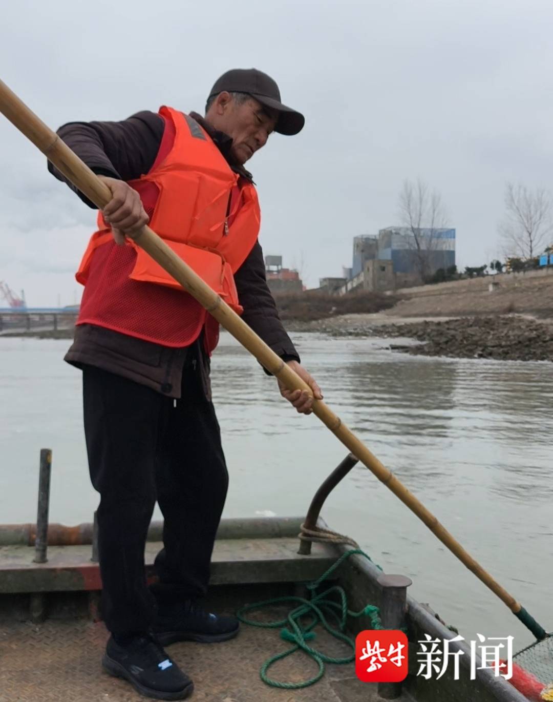 早春三月,长江南通段碧波荡漾。早晨8点,68岁的费长中已经穿好救生衣,熟练地翻越半米高的钢板平台,登上那艘插着红旗的小船,开始一天的巡江护江工作。他每天从东港水闸出发,长江沿线的九圩港到滨江大桥再到五山沿江,这22公里的岸线水段,他再熟悉不过。